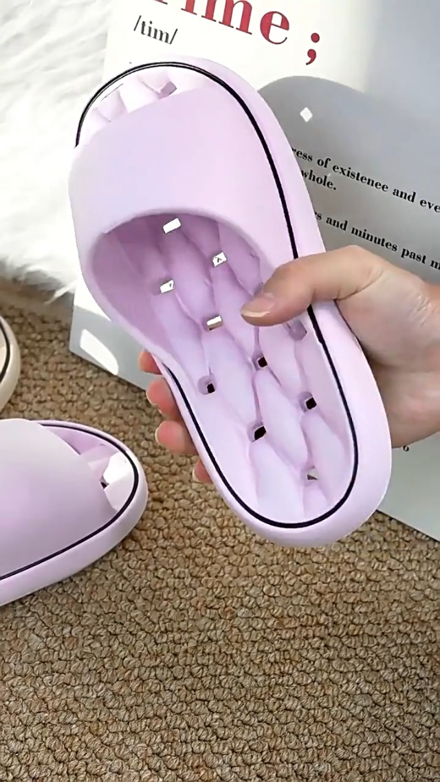 Durch die cleveren Drainagelöcher trocknen die Hausschuhe super schnell und deine Füße bleiben schön frisch. Kein unangenehmer Geruch, kein Schwitzen - einfach nur Komfort!