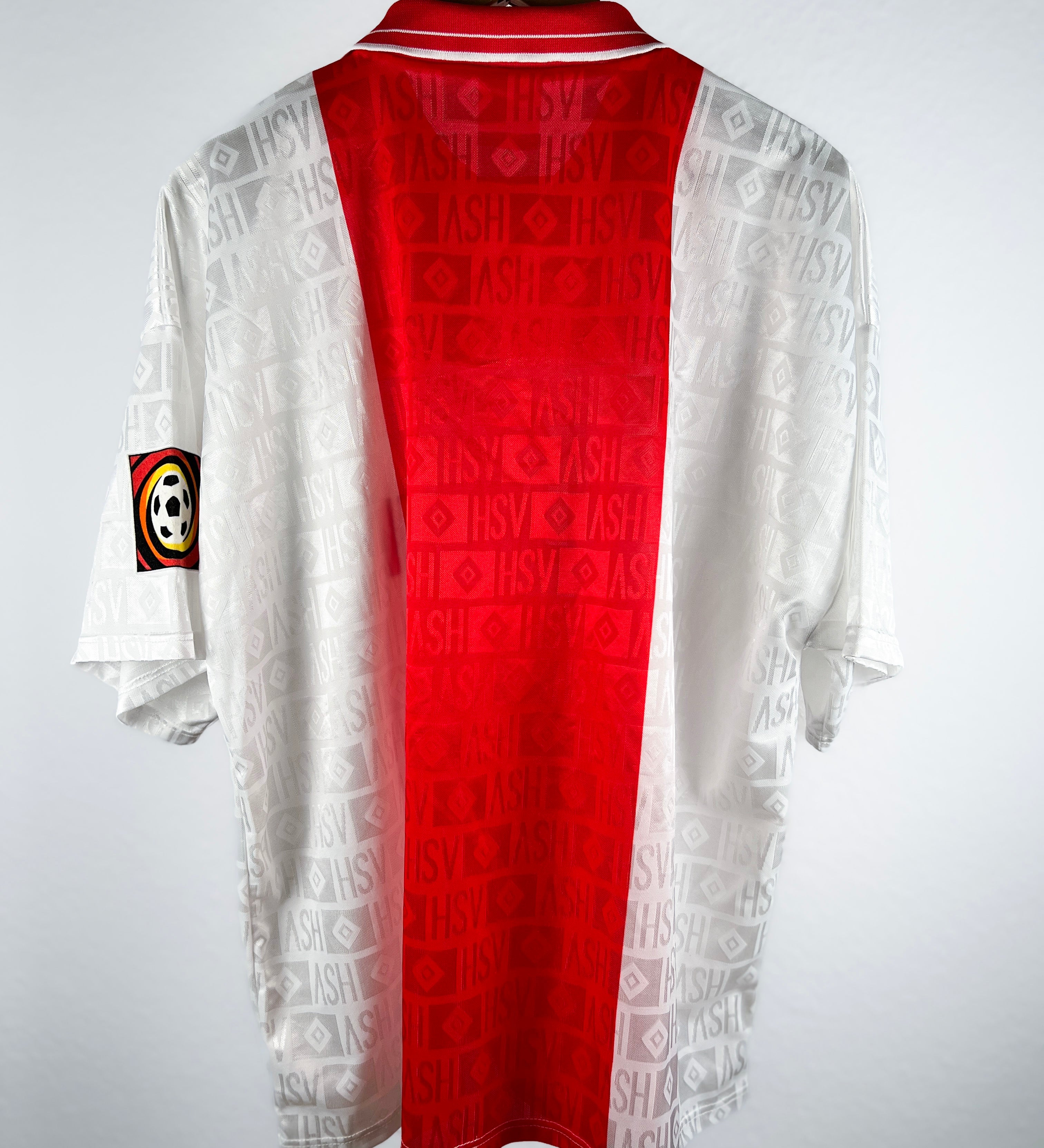 HSV-Fans, aufgepasst! Diese coole Retro-Tasche ist perfekt für Stadionbesuche oder den Alltag. In dunkelblau mit weißen Kontrasten und großem HSV-Schriftzug - da weiß jeder sofort wo's langgeht! Maße: 22x23x10cm - also praktisch aber nicht zu klein. Ein großes Hauptfach mit Innentasche plus zwei zusätzliche Reißverschlussfächer für Kleinkram. Der verstellbare Schultergurt sorgt für perfekten Tragekomfort. Material: 70% Polyurethan, 30% Polyester - robust und langlebig. Perfekt für Handy, Schlüssel, Geldbeutel und Fan-Artikel. Ob zum Spiel im Volksparkstadion oder für die Stadt - mit dieser Tasche seid ihr immer stylisch unterwegs. Ein Muss für jeden echten HSV-Supporter! Einfach über die Schulter werfen und losgehen - so zeigt man Flagge! Auch super als Geschenk für HSV-begeisterte Freunde oder Familienmitglieder.