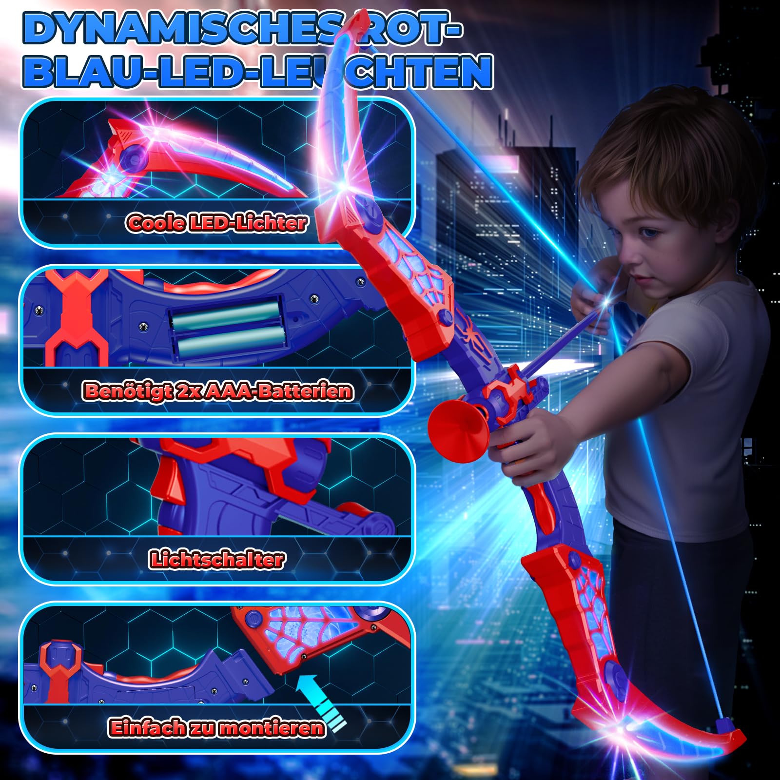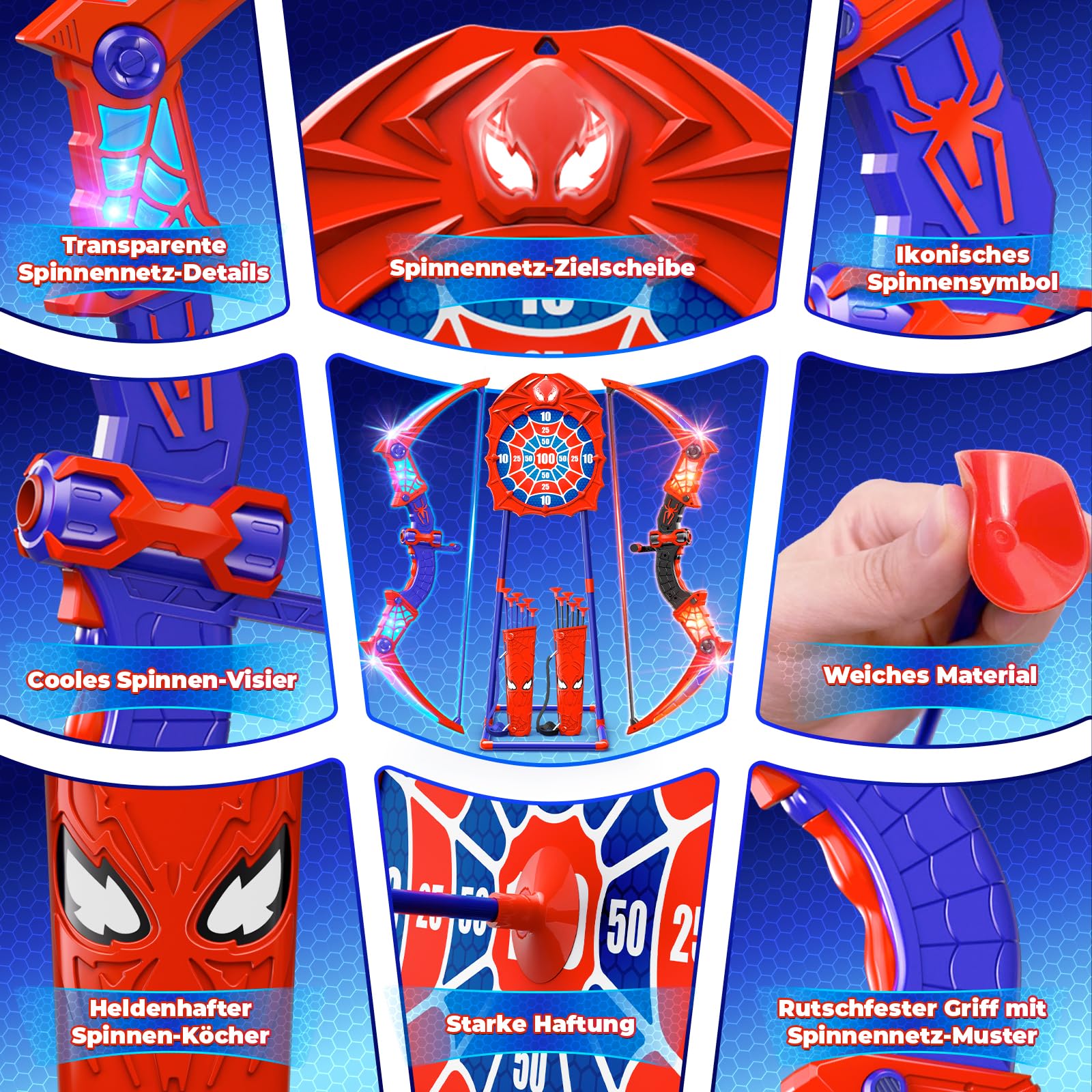 Spider-Man Pfeil Und Bogen Set Mit LED-Lichtern - Cooles Kinderspielzeug Ab 3 Jahren