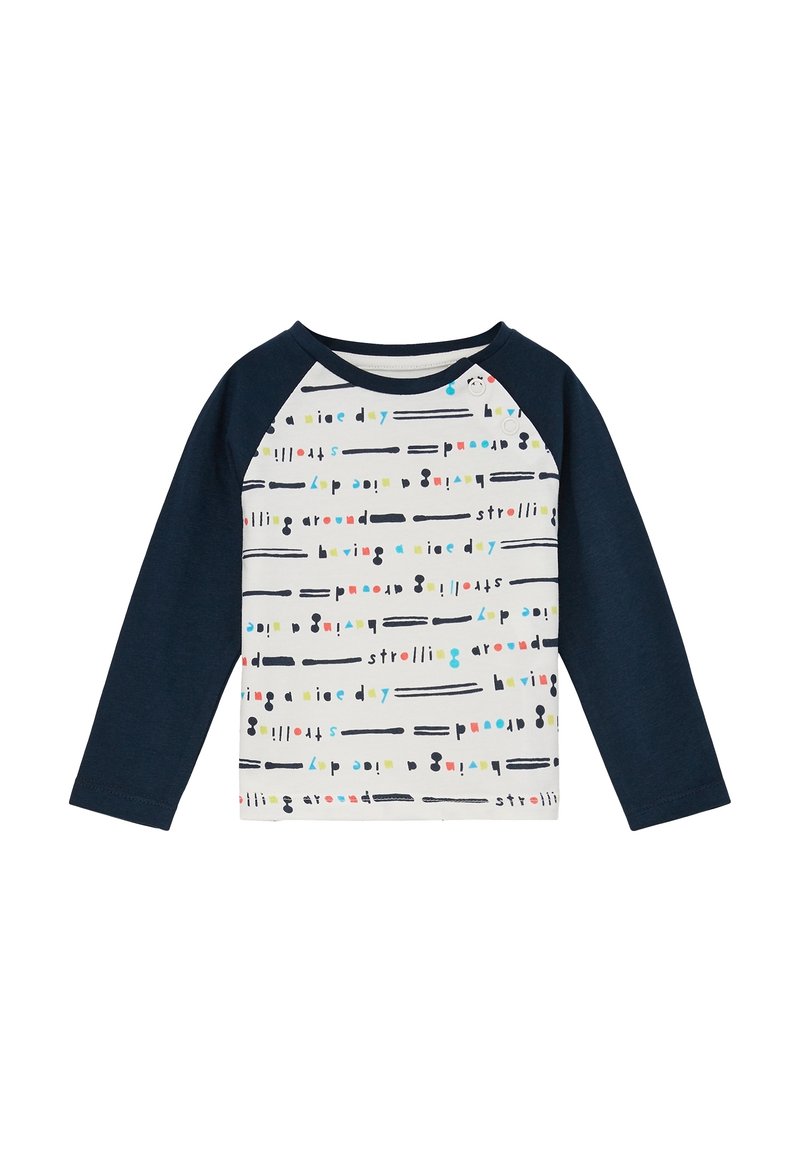 So süß und praktisch! Dieses Langarmshirt von s.Oliver ist aus weicher Baumwolle mit lässiger Flammgarnstruktur. Mit praktischen Druckknöpfen an der Schulter - easy an- und ausziehen. Stickerei und Schriftprint sorgen für den stylischen Look. Der Rollsaum-Ausschnitt und die fixierten Ärmelbündchen machen es zum perfekten Alltagsbegleiter. Für Jungen und Mädchen gleichermaßen geeignet - einfach unverzichtbar in der Babygarderobe!