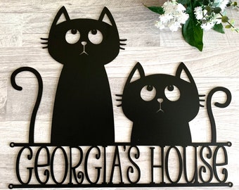 Personalisiertes Holzschild 'Unser Haus' Mit Katzenmotiv - Haustürschild Individuell Gestalten