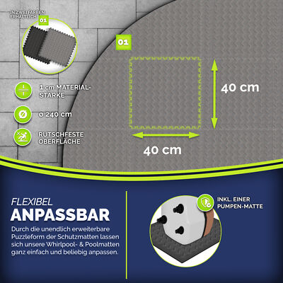 Endlich eine praktische Lösung für deinen Pool! Diese robuste Unterlage schützt nicht nur deinen Rasen oder die Terrasse, sondern verlängert auch die Lebensdauer deines Pools enorm. Es gibt sie in verschiedenen Größen: 3,05m (10 Fuß), 3,7m (12 Fuß) oder 4,6m (15 Fuß) Durchmesser - also für die meisten Rundpools perfekt geeignet. Das hochverdichtete Material ist super stabil und verhindert, dass Steinchen oder andere spitze Gegenstände die Poolfolie beschädigen. Gleichzeitig ist die Oberfläche angenehm weich unter den Füßen. Einfach ausrollen, bei Bedarf zuschneiden und den Pool darauf stellen - mehr ist nicht zu tun! Das spezielle Gewebe sorgt für optimale Hygiene und beugt Verformungen vor. Ob auf dem Rasen, der Terrasse oder im Garten - diese Unterlage ist ein Must-Have für jeden Poolbesitzer. Spart dir Ärger und Kosten für Reparaturen. Dein Pool bleibt länger schön und du hast mehr Spaß beim Baden! Einfach genial, oder?