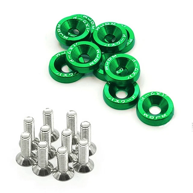Willst du deinem Auto unter der Haube mehr Pepp verleihen? Dieses 10-teilige Set mit M6 Schrauben und Unterlegscheiben ist genau das Richtige! Aus eloxiertem Aluminium gefertigt, sind sie nicht nur schick, sondern auch rostfrei und langlebig. Die Schrauben sind etwa 20mm lang bei 4mm Durchmesser, die Scheiben haben 19mm Durchmesser. Du kannst sie an Kotflügeln, Scheinwerfern, Stoßstangen - eigentlich überall da verwenden, wo M6-Löcher sind. Montieren geht ratzfatz - einfach die alten Teile raus, die neuen rein. Und das Beste: Es gibt sie in verschiedenen Farben - Schwarz, Rot, Blau, Grün, Lila, Silber oder Grau. Such dir einfach die Farbe aus, die zu deinem Auto passt! So kriegt dein Motorraum ganz schnell den letzten Schliff. Einfach, aber wirkungsvoll!
