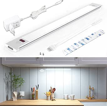 Perfektes Licht für deine Küche! Diese 30cm lange LED-Leuchte mit superflachem Design (nur 6,2mm dick) macht dunkle Schränke zum hellen Arbeitsplatz. Der berührungslose Sensor ist genial - einfach mit der Hand vorwischen und das Licht geht an, ohne dass du schmutzige Schalter anfassen musst. Kein USB, keine Batterien - einfach mit dem mitgelieferten Netzteil anschließen und fertig! In kühlem 6000k Weiß für optimale Ausleuchtung. Perfekt nicht nur für Küchenschränke, sondern auch für Regale, Vitrinen oder Flurbereiche. Einfach mit dem 3M-Kleber ankleben oder festschrauben. Macht deine Küche nicht nur heller, sondern auch viel gemütlicher!