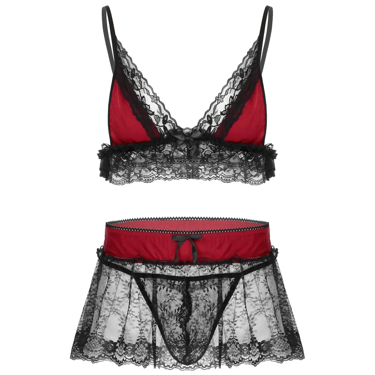 Aislor Herren Unterwäsche Set - Spitze BH Top + Tanga Slip Reizwäsche