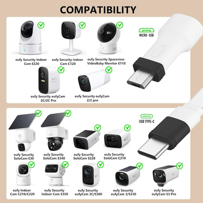 Endlich flexibel bei der Kameramontage! Dieses 9 Meter lange Verlängerungskabel speziell für Eufy SoloCam S220/S340/S300/E30 und eufyCam 3/3C/S3 Pro Modelle löst das Problem mit zu kurzen Originalkabeln. Mit wasserdichtem Typ-C Anschluss der perfekt in deine Kamera passt und sie vor Regen und Feuchtigkeit schützt. Das 5V/2A Netzteil mit Überladungs-, Überstrom- und Überhitzungsschutz garantiert maximale Sicherheit. So kannst du deine Überwachungskamera auch an Stellen installieren, wo wenig Sonnenlicht hinkommt. Einfach anschließen und deine Kamera lädt kontinuierlich - egal ob an der Hauswand, im Garten oder an schwer erreichbaren Orten!