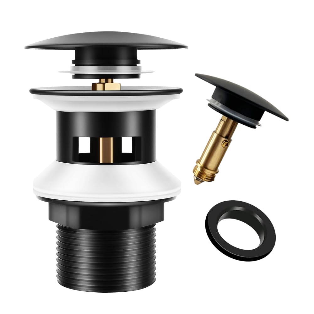 Modernisiere dein Badezimmer mit dieser stylischen Ablaufgarnitur! Der praktische Pop-Up-Mechanismus macht das Befüllen des Waschbeckens zum Kinderspiel - einfach drücken und das Wasser bleibt stehen. Nochmal drücken und es läuft ab. Aus hochwertigem Edelstahl in schickem Schwarz - rostfrei und langlebig. Mit doppelter Silikon-Dichtung für absolute Dichtheit. Passt für die meisten Standard-Waschbecken aus Keramik, Glas oder Edelstahl. Einfache Installation ohne Werkzeug - in wenigen Minuten montiert. Die 99mm Länge ist ideal für die meisten Waschbecken. Mach dein Bad komplett mit diesem funktionalen und schicken Accessoire!