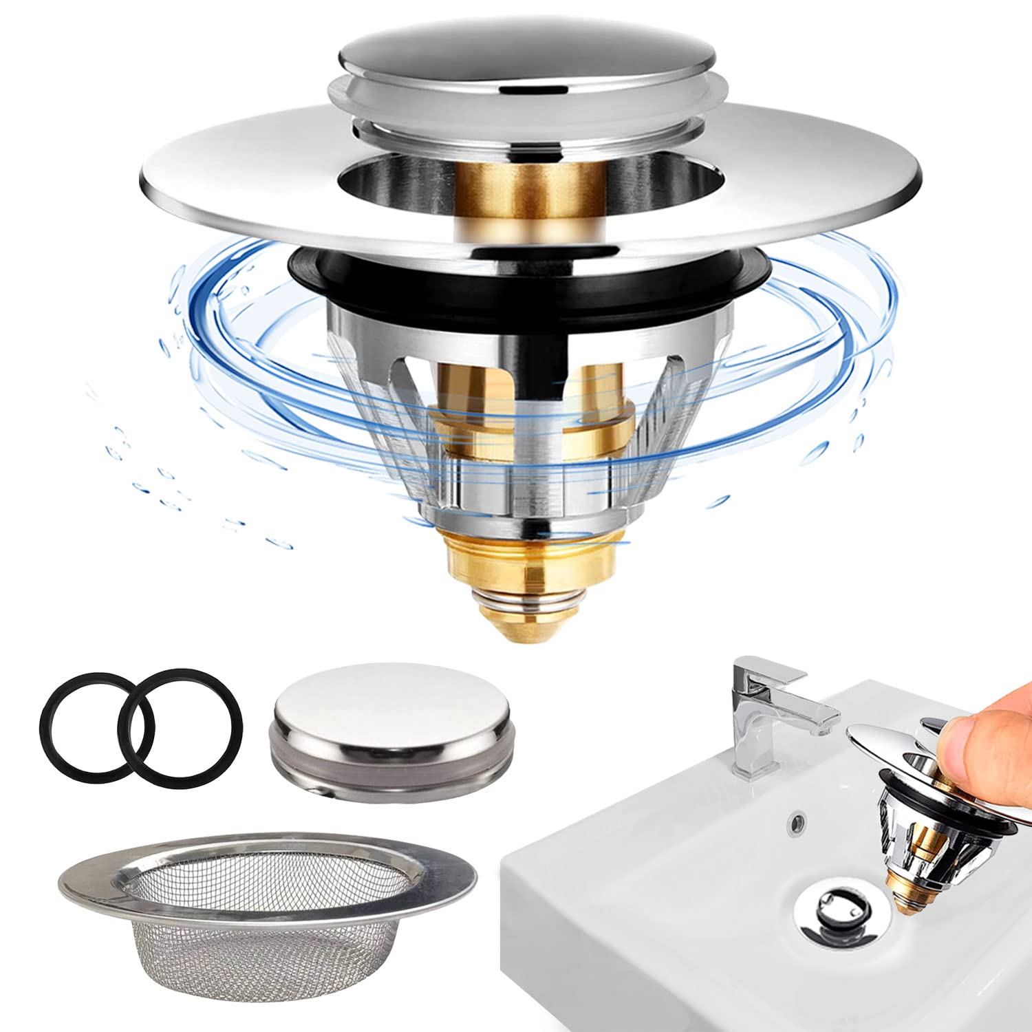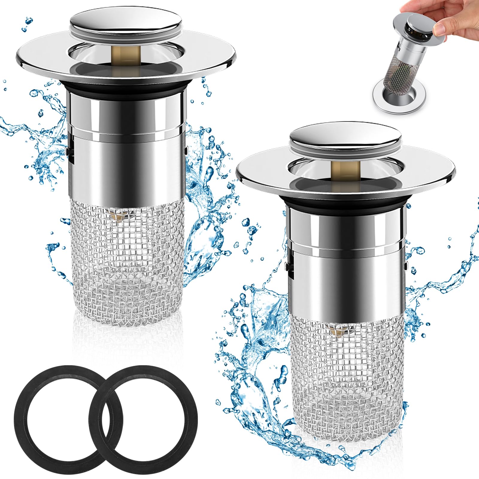 2x Waschbecken-Ablaufgitter Mit Haarfilter - Pop-Up Mechanismus Für Alle Standard-Waschbecken