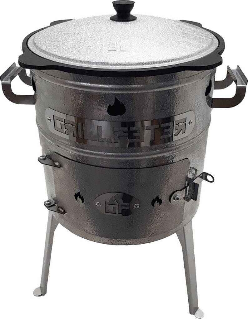 Utschak Timur Mit Kazan - Edelstahl Grill Mit Gusseisen Kessel