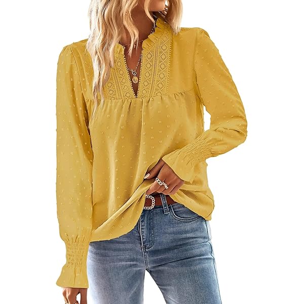 Damen Bluse Mit V-Ausschnitt - Elegantes Oberteil Mit Puffärmeln Und Rüschen
