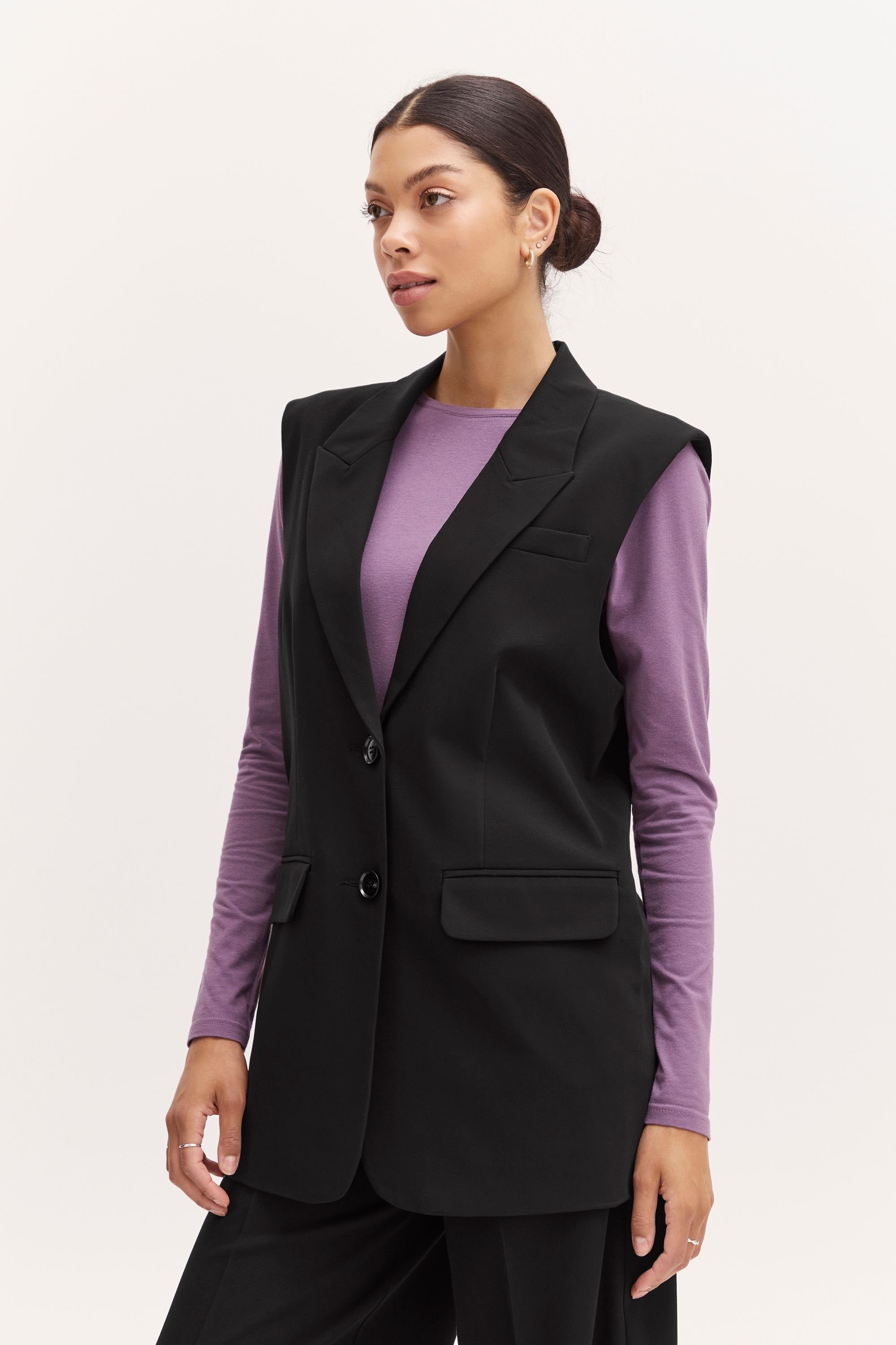 OWEIEYEU Damen Anzugweste V-Ausschnitt - Kurze Büro Weste Aus Baumwolle