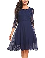 Damen Cocktailkleid V-Ausschnitt Spitzenkleid - Elegantes A-Line Partykleid Mit 3/4 Arm