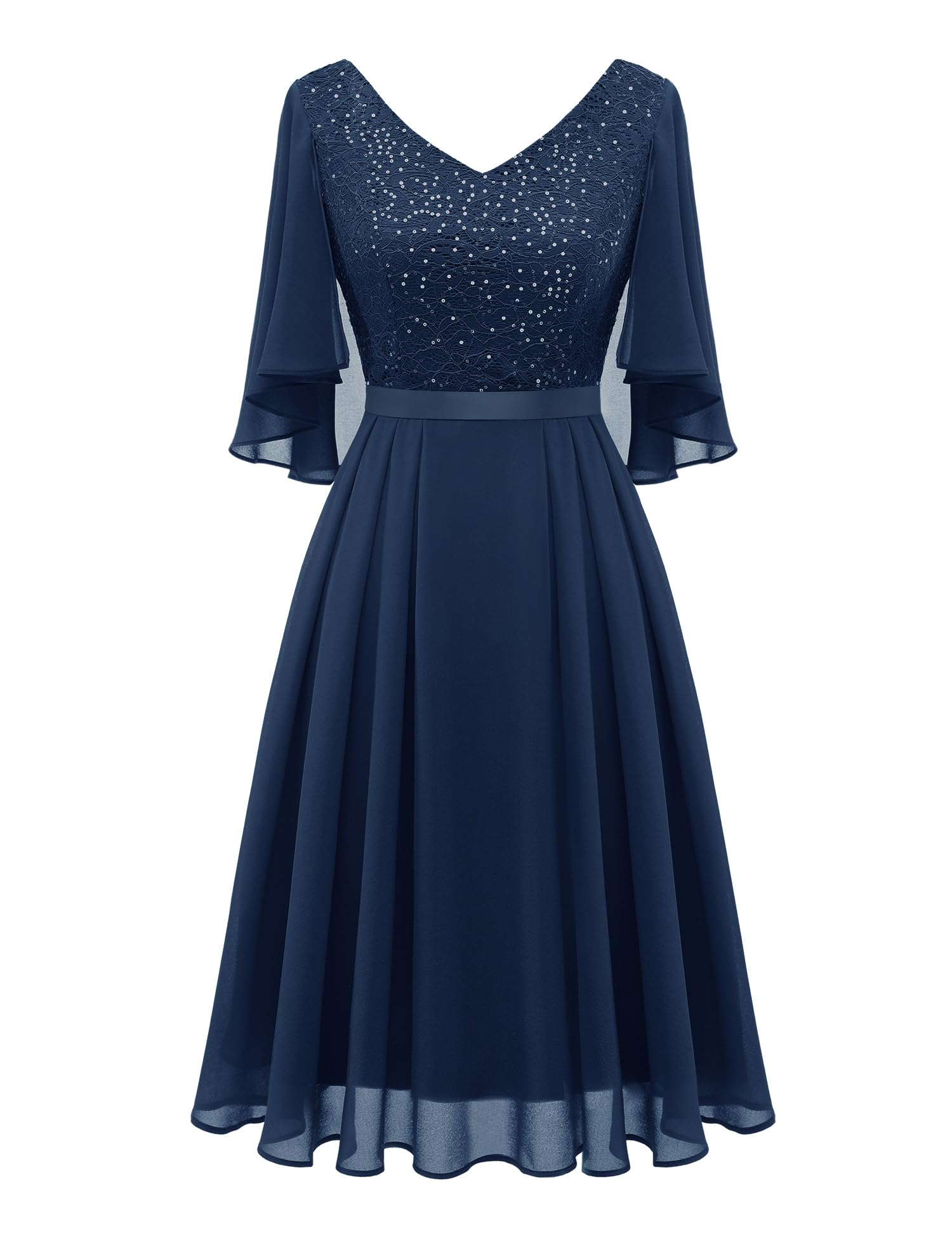 Einfach umwerfend! Dieses elegante Cocktailkleid mit V-Ausschnitt und Spitzen-Details macht dich zur Königin jeder Party. Im schmeichelhaften A-Line-Schnitt, knielang und mit 3/4-Ärmeln - perfekt für jeden Anlass. Aus weichem, atmungsaktivem Stoff, der sich angenehm auf der Haut anfühlt. Super elastisch, gibt dir maximale Bewegungsfreiheit. Ob Hochzeit, Geburtstagsfeier, Abendevent oder romantisches Dinner - dieses Kleid ist immer die richtige Wahl. Der V-Ausschnitt betont deine Figur perfekt, die Spitze verleiht eine romantische Note. Passt zu High Heels, Sandalen oder eleganten Pumps. Einfach anziehen und strahlen! In verschiedenen Größen erhältlich - für die perfekte Passform. Macht jede Frau zum absoluten Hingucker. Einfach tragen und Komplimente sammeln!