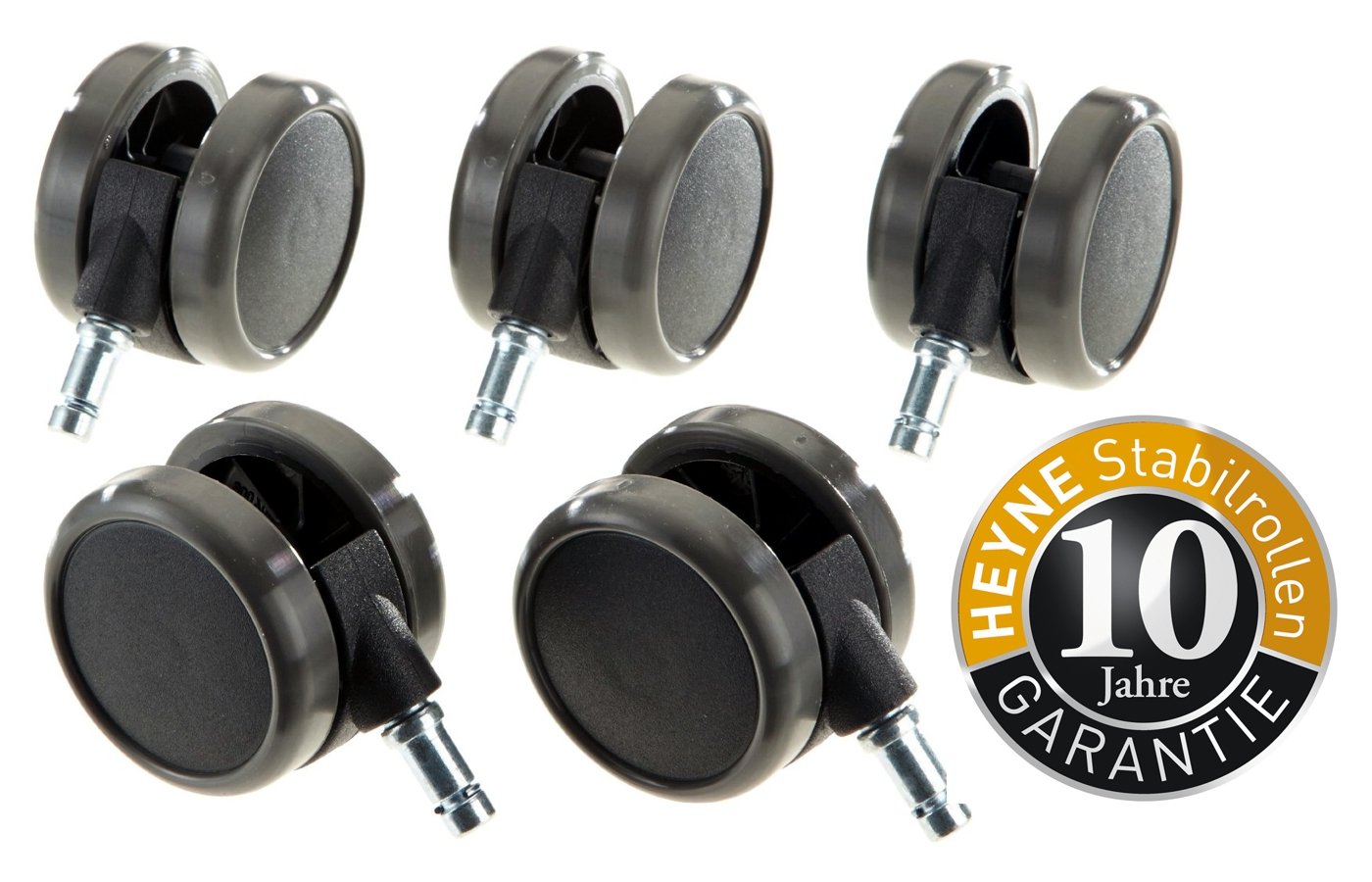 Dein Bürostuhl rollt nicht mehr richtig oder hinterlässt Spuren auf dem Boden? Diese noblechairs Hartbodenrollen sind die perfekte Lösung! Mit 60mm Durchmesser gleiten sie superweich über Parkett, Laminat oder Fliesen - ohne Kratzer! Die automatische Feststellfunktion ist genial: Sobald du aufstehst, blockieren die Rollen und dein Stuhl bleibt genau dort, wo du ihn haben willst. Perfekt also, wenn du oft aufstehst und nicht jedes Mal den Stuhl suchen willst. Einfach die alten Rollen abziehen, diese draufstecken - fertig! Aus hochwertigem Material und in schickem Schwarz passen sie zu fast jedem Bürostuhl. Endlich mehr Komfort und Sicherheit in deinem Home-Office oder Büro. Mach deinen Arbeitsplatz mit diesen Rollen gleich viel angenehmer!