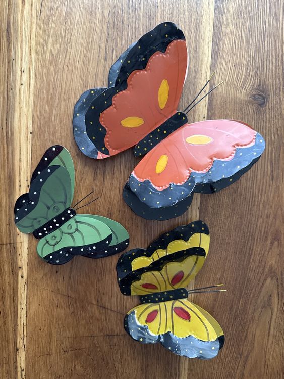 Verwandle deinen Garten in ein Schmetterlingsparadies! Dieses 3er Set Metall-Schmetterlinge in blau, lila und gelb bringt Leben und Farbe in deine Outdoor-Bereiche. Jeder Schmetterling misst 27x22cm und hat eine schöne strukturierte Oberfläche, die richtig realistisch wirkt. Aus robustem Eisen mit rostbeständiger Beschichtung gefertigt, halten sie auch bei Regen und Sonne problemlos stand. Die praktischen Haken auf der Rückseite machen das Aufhängen super einfach - ob am Zaun, an der Wand, im Garten oder sogar innen im Wohnzimmer. Sie bringen eine natürliche, romantische Atmosphäre in jede Umgebung. Perfekt als Geschenk für Gartenliebhaber oder einfach um deinem Zuhause einen persönlichen Touch zu verleihen. Einfach aufhängen und sofort mehr Charme und Naturgefühl genießen!