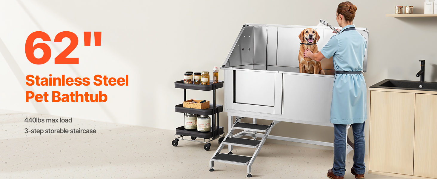 Endlich stressfrei Hunde waschen! Diese professionelle Hundewaschstation aus Edelstahl macht's möglich. Maße: 155x79x147cm, perfekt für große und mittlere Hunde. Mit integrierter Rampe für sicheren Ein- und Ausstieg. Komplettset inklusive Warm-/Kaltwasserhahn, Duschkopf, Seifenspender und rutschfester PE-Platte. Die einteilige Schweißung ist absolut wasserdicht. Du kannst im Stehen arbeiten - kein Bücken mehr! Einfache Installation und super pflegeleicht. Dein Hund wird das Baden lieben und du sparst dir den Gang zur Hundesalon. Ein Traum für jeden Hundebesitzer!