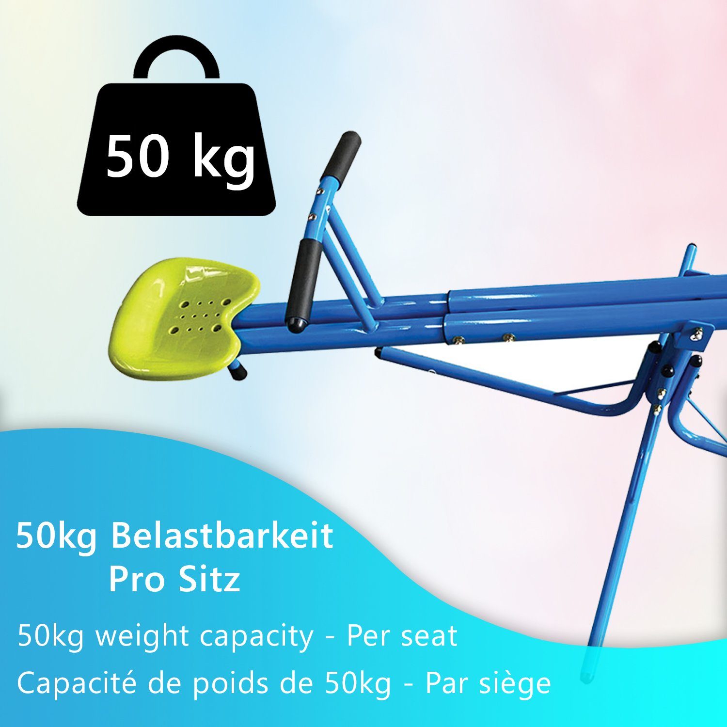 Deine Kinder lieben Bewegung? Diese 360° drehbare Gartenwippe von VEVOR bringt Spaß und Action in deinen Garten! Mit 1905x790x660mm Maßen bietet sie genug Platz für zwei Kinder ab 3 Jahren. Jeder Sitz trägt bis zu 45,4kg - robust genug für Jahre voller Spielspaß. Das besondere Feature: Die Wippe lässt sich um 360° drehen - so hüpfen die Kinder nicht nur auf und ab, sondern auch im Kreis! Super für Gleichgewichtstraining und Koordination. Die vierzackigen Stützbeine sorgen für absolute Stabilität auf Gras, Sand oder Beton - kein Umkippen! Aus pulverbeschichtetem Karbonstahl - wasserdicht, rostbeständig und extrem langlebig. Die breiten Sitze (235x200x100mm) sind bequem und die rutschfesten Griffe geben sicheren Halt. Einfache Montage ohne Spezialwerkzeug - schnell aufgebaut und sofort spielbereit. Perfekt für Innen- und Außenbereich - ob im Garten, auf der Terrasse oder im Spielzimmer. Reduziert die Bildschirmzeit und fördert die körperliche Gesundheit deiner Kinder. Die gepolsterte Stange mit Nylonbezug sorgt für eine ruhige, sichere Fahrt. Deine Kinder werden stundenlang Spaß haben und dabei ganz nebenbei ihre motorischen Fähigkeiten verbessern. Ein sicheres und langlebiges Spielgerät, das deinen Garten zum Abenteuerspielplatz macht!