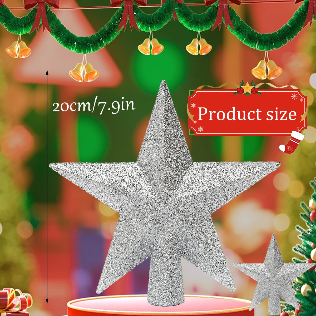 Krone deinen Weihnachtsbaum mit diesem wunderschönen Stern! Mit 20cm Höhe ist er der perfekte Abschluss für deinen Christbaum. In elegantem Weiß mit Glitzer-Pulver veredelt, funkelt er im Lichterglanz. Aus bruchsicherem Kunststoff gefertigt - hält viele Weihnachtsfeste lang. Das schlanke Design passt zu jeder Baumgröße und jedem Farbkonzept. Einfach auf die Baumspitze setzen und feststecken - schon ist dein Baum komplett. Verwandele deinen Weihnachtsbaum in ein wahres Prachtstück! Einfach magisch!