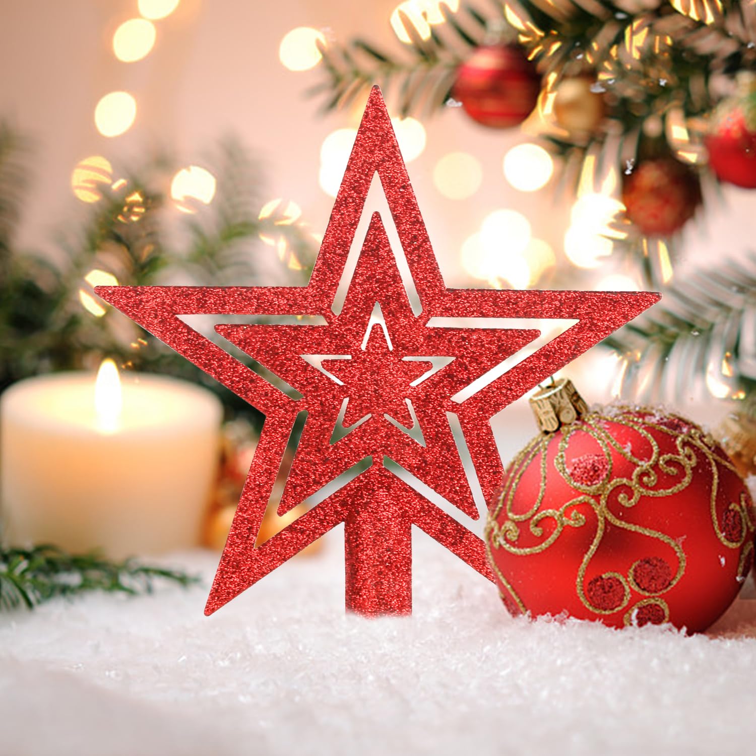 VEYLIN Weihnachtsbaumspitze 20cm - Weißer Stern Mit Glitzer | Bruchsicherer Christbaum Stern