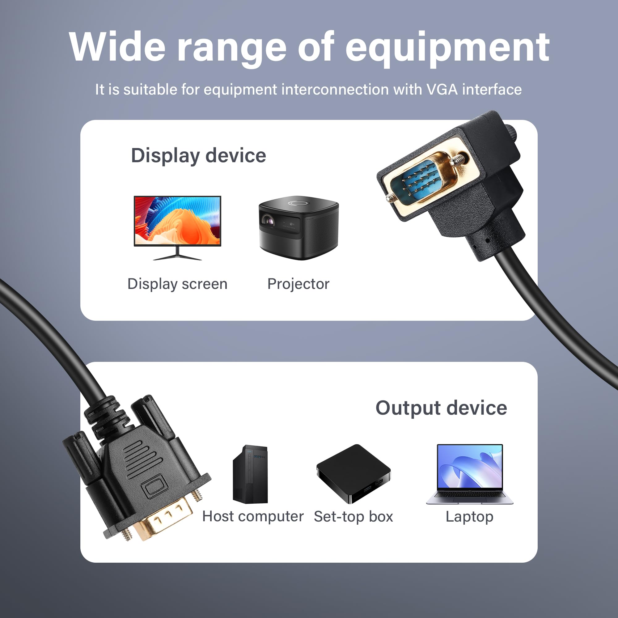 90 Grad VGA Kabel 0.5m - Rechtwinkliger VGA Stecker Für Monitor & Projektor