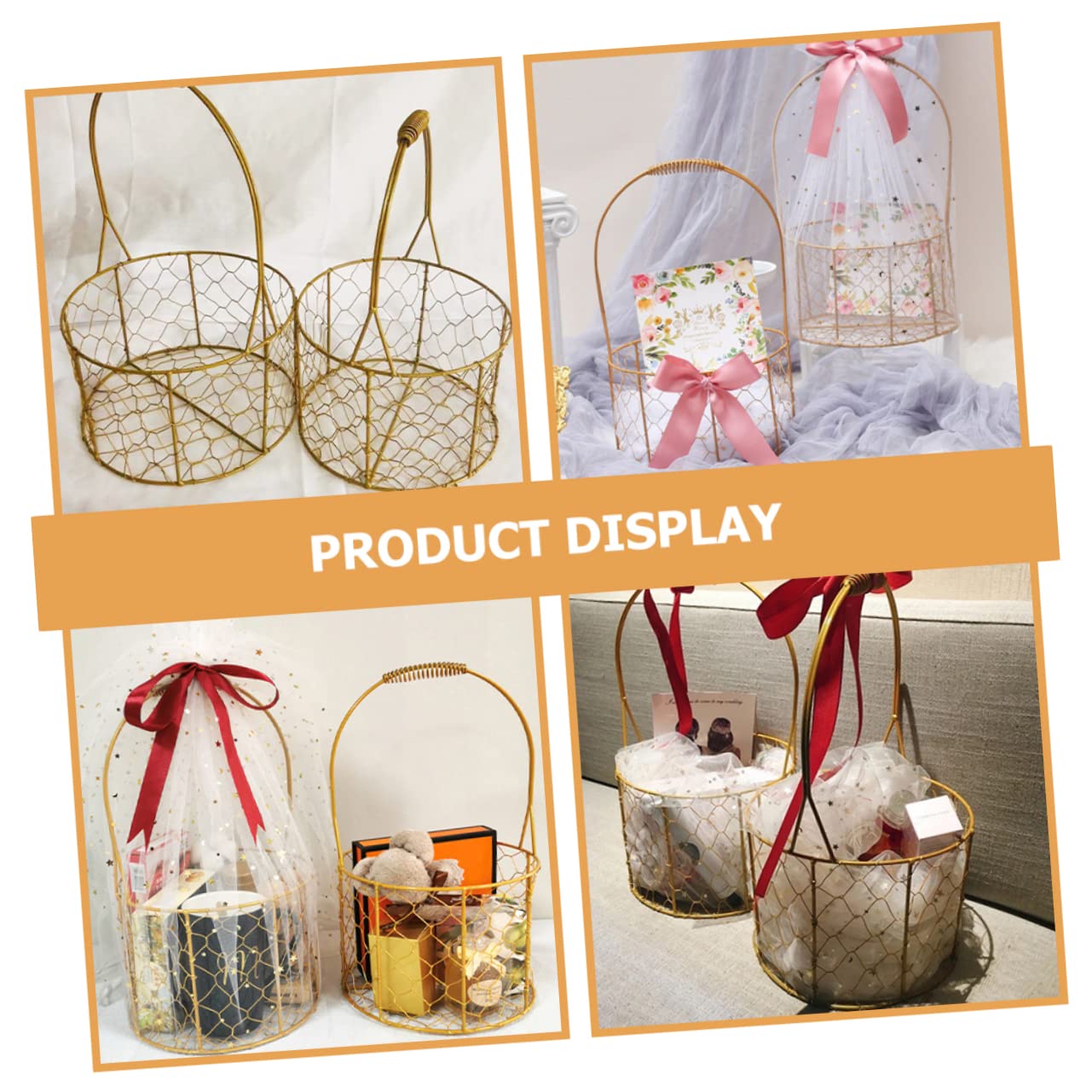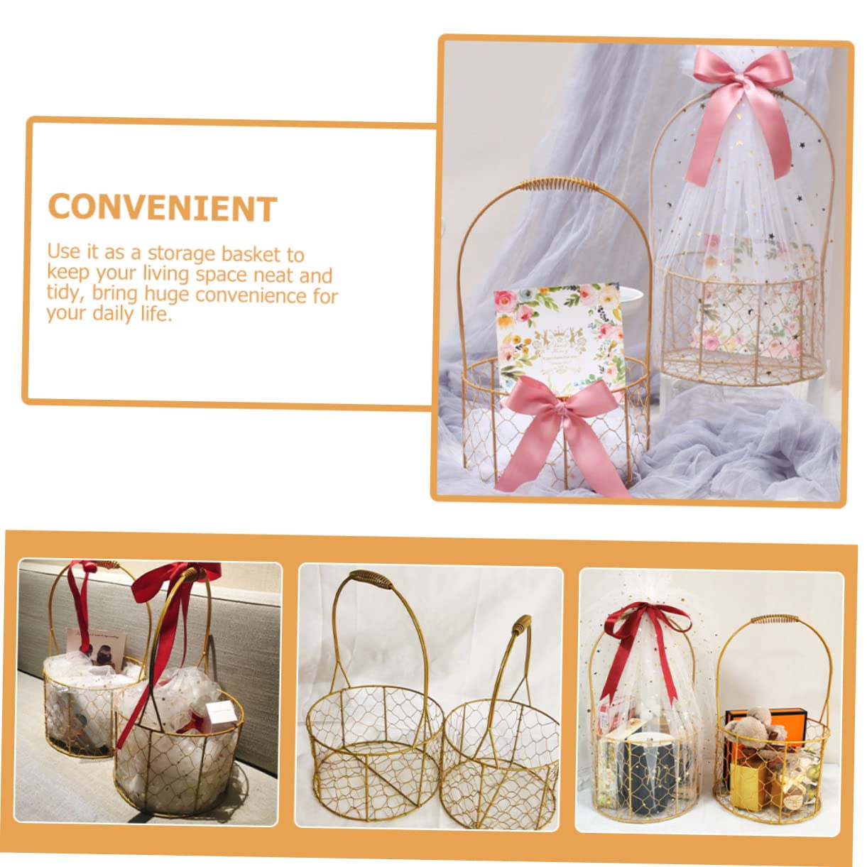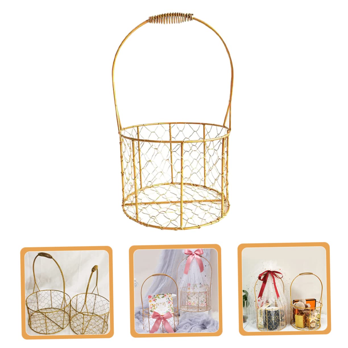 VICASKY Runder Metallkorb Mit Henkel - Hochzeits Blumenmädchen Korb Gold