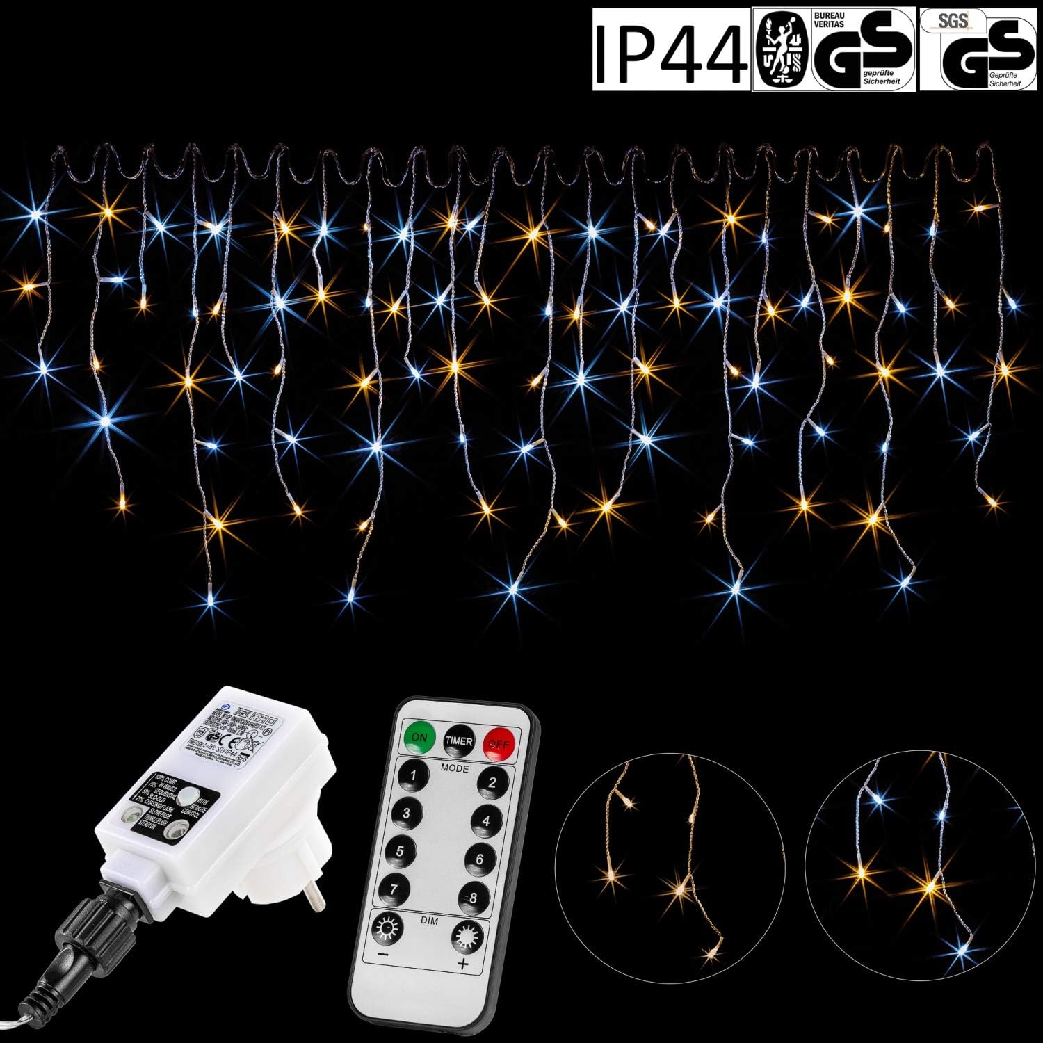 Die VOLTRONIC Eisregen Lichterkette bringt magische Stimmung in dein Zuhause! Mit 200 LEDs - super hell und energiesparend. IP44 Schutzklasse - perfekt für Innen und Außen. Transparentes Kabel - fast unsichtbar wenn ausgeschaltet. Niedervolt-Betrieb mit 7V - absolut sicher. In 3 Größen erhältlich: 5m (200 LED), 10m (400 LED), 15m (600 LED). 3 Farbvarianten: Kaltweiß, Warmweiß, Kaltweiß+Warmweiß. Optional mit Fernbedienung - 8 Programme und Dimmfunktion. Automatischer Timer - 6h an, 18h aus. Verbraucht nur 3 Watt - extrem sparsam. Ideal für Weihnachten, Gartenpartys, Hochzeiten. Wenn du stimmungsvolle Beleuchtung suchst - diese Lichterkette ist perfekt!