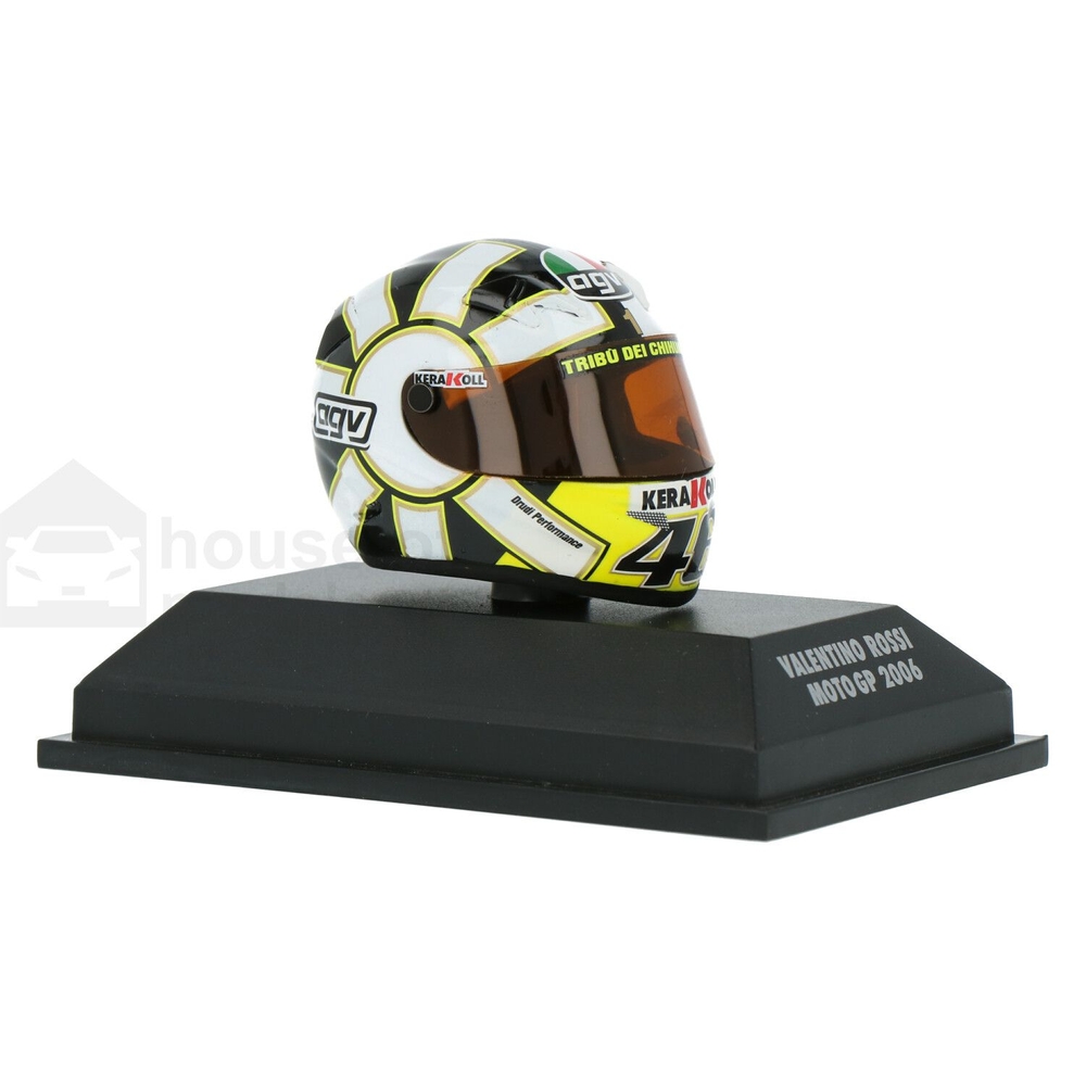 Hey Rossi-Fans! Dieser Mini-Helm ist einfach nur krass! Eine detailgetreue 1:5 Replica vom originalen VR46 Helm vom MotoGP Rennen in Misano 2021 - genau wie ihn der Doktor selbst getragen hat! \\n\\nDie Verarbeitung ist absolut top und jedes Detail ist originalgetreu nachgebildet. Ob die Farben, die Logos oder die Form - da hat sich jemand richtig Mühe gegeben. Perfekt für deine Rossi-Sammlung oder als Deko fürs Regal! \\n\\nMit den Maßen passt der Helm super in jede Vitrine und ist sofort der Hingucker in deinem Zimmer. Die Lieferung kommt im originalen Karton - ideal auch als Geschenk für andere MotoGP-Fans. \\n\\nEgal ob du selbst Rossi-Fan bist oder jemandem eine Freude machen willst - mit diesem Mini-Helm liegst du immer richtig. Der bringt echten Rennsport-Flair in dein Zuhause! \\n\\nMaßstab: 1:5 \\nModell: VRH553203 \\nAnlass: Misano Race 2 2021 \\nLieferung: Im Originalkarton \\nFahrer: Valentino Rossi VR46 \\n\\nHol dir ein Stück MotoGP-Geschichte nach Hause - dieser Mini-Helm ist einfach legendär!