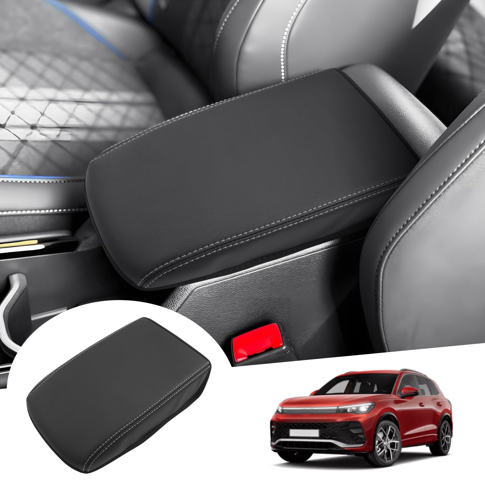 Auto Armlehnen Polster Für VW Tiguan III 2023-2025 | Leder Schutz Mit Taschen - Schwarz