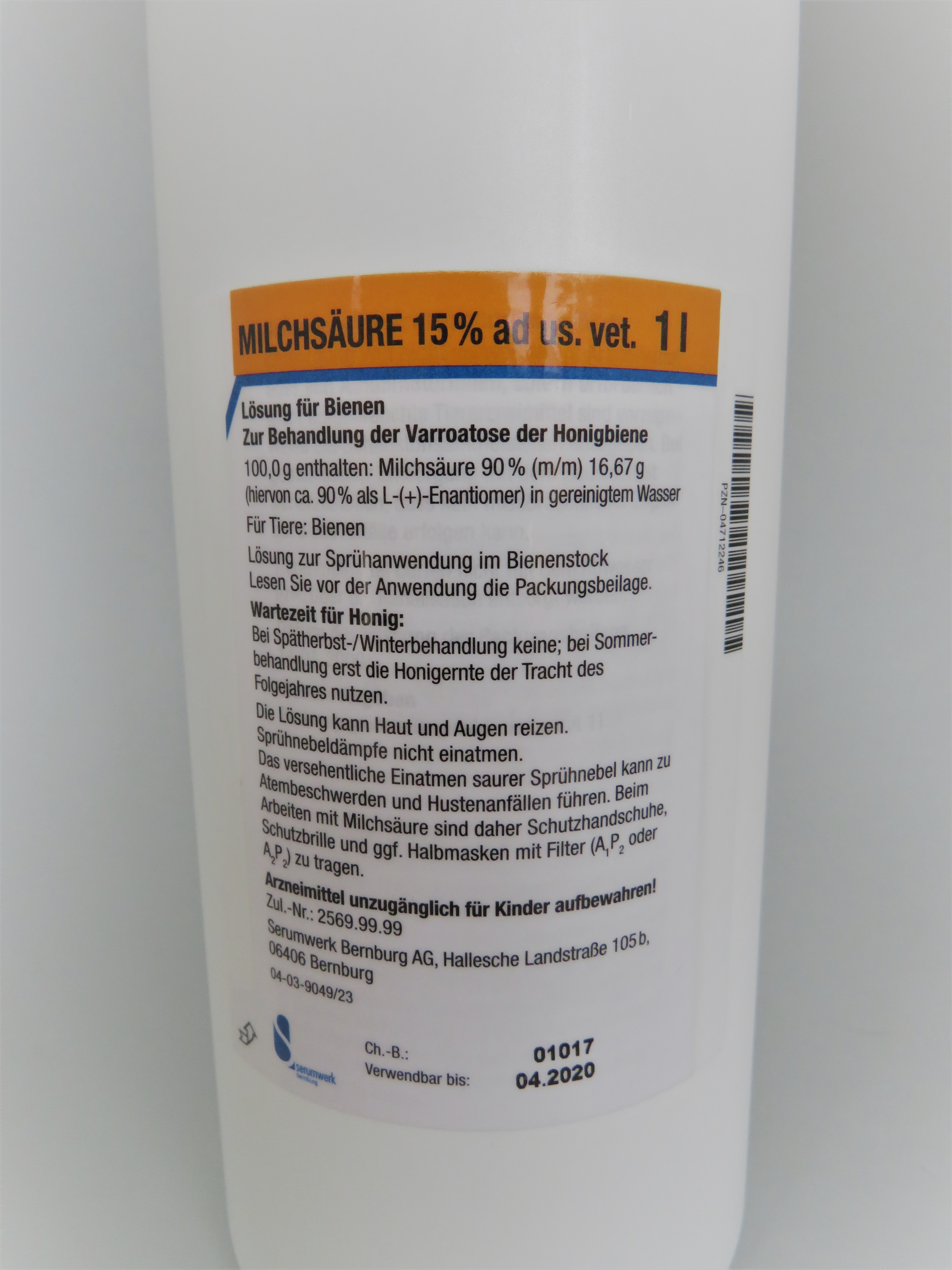 Milchsäure 15% 1 Liter - Varroabehandlung Für Bienen Gegen Milben