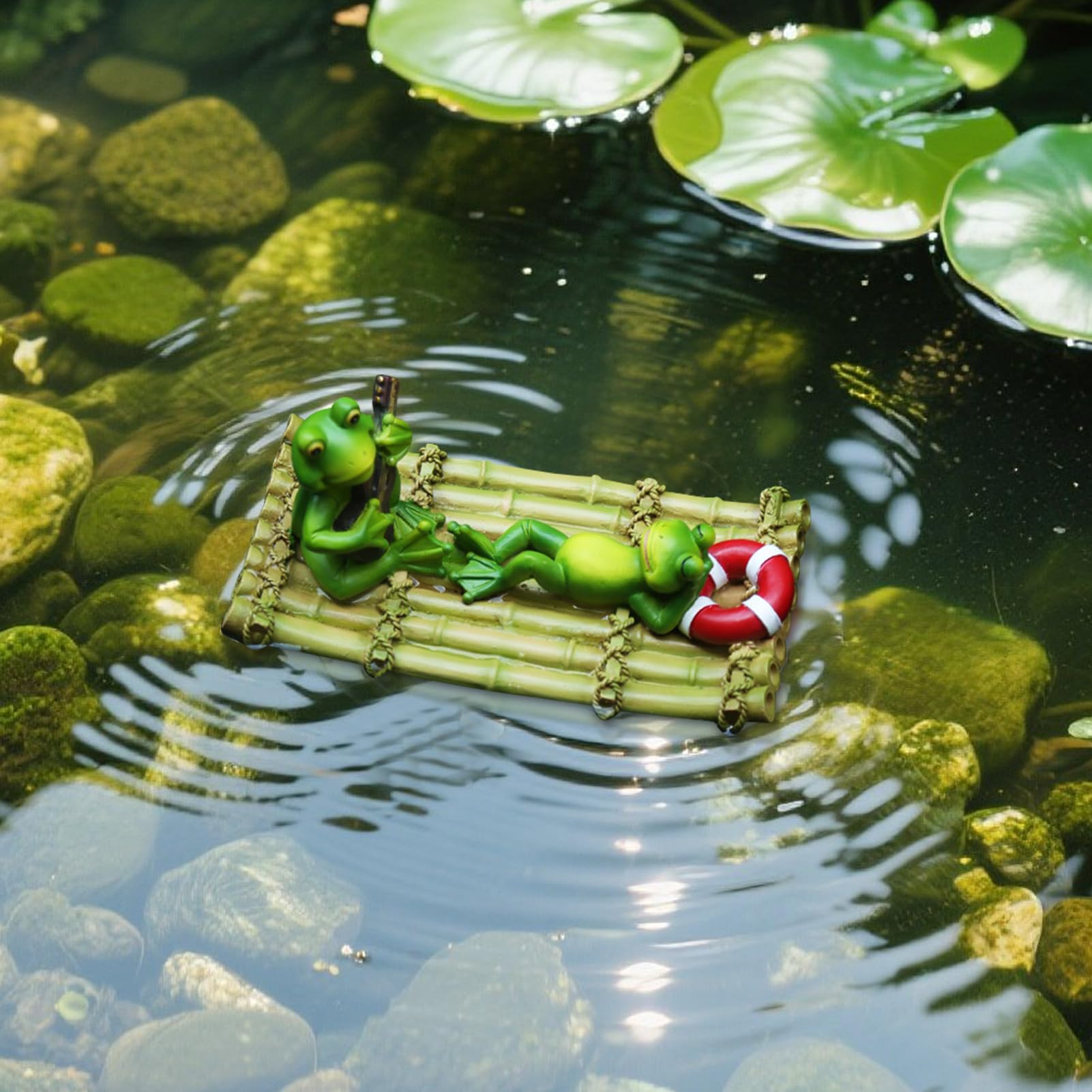 Vartegas Schwimmfrosch Gartenfigur - Wetterfeste Harzfigur Für Teich & Wasserspiele