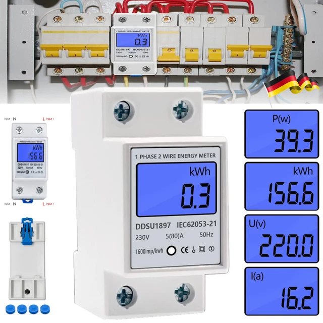 Veemoon Stromzähler 220V Für DIN-Schiene - LCD Energiemesser Mit Hintergrundbeleuchtung