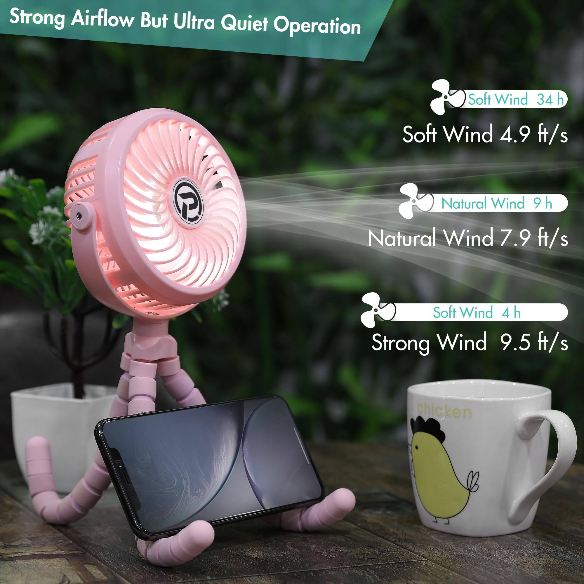 Kinderwagen Ventilator USB - Wiederaufladbar & 360° Drehbar Mit Flexiblem Stativ