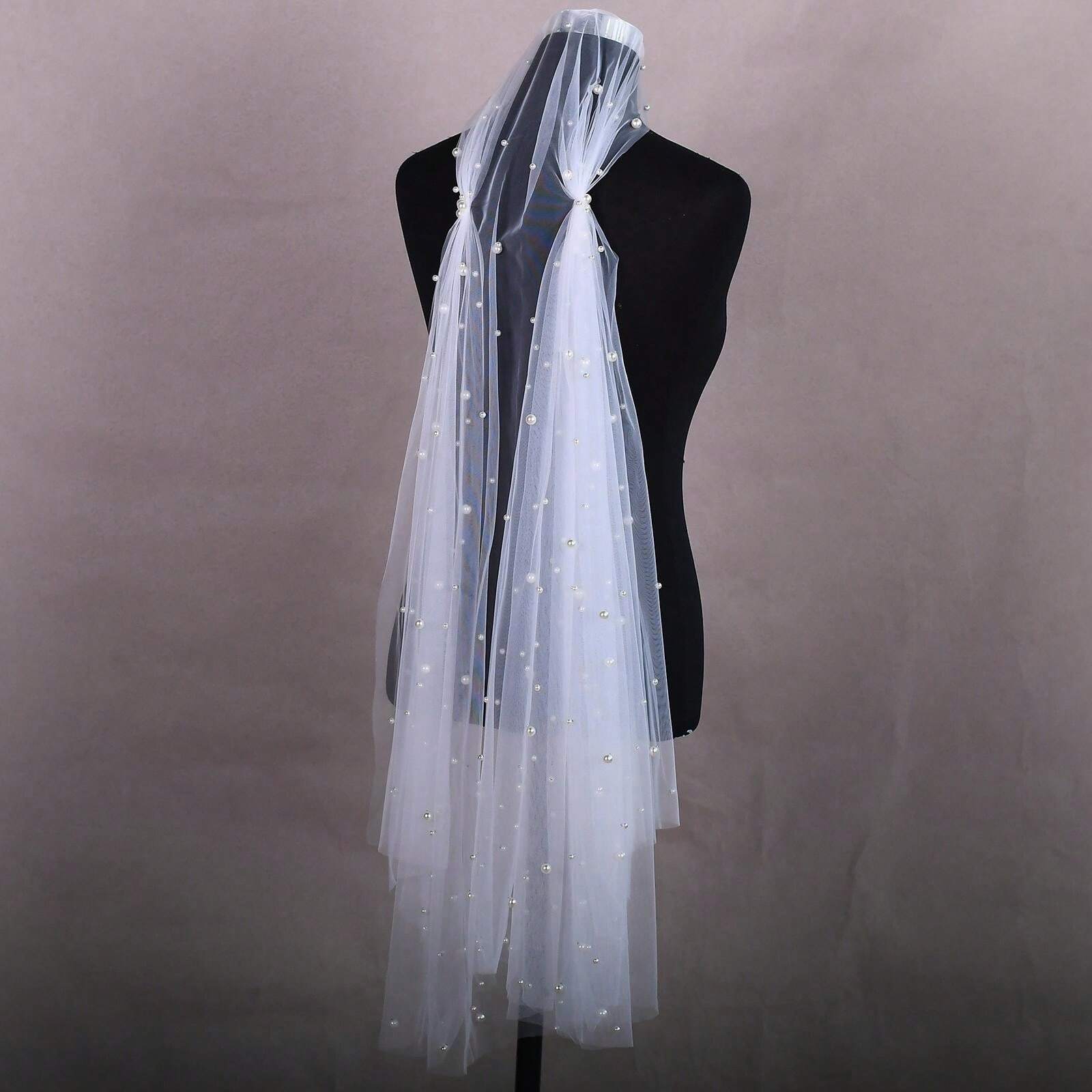 Venus Jewelry Brautschleier Mit Perlen & Kristallen - 2-stufig 25+30 Zoll Perlenschleier