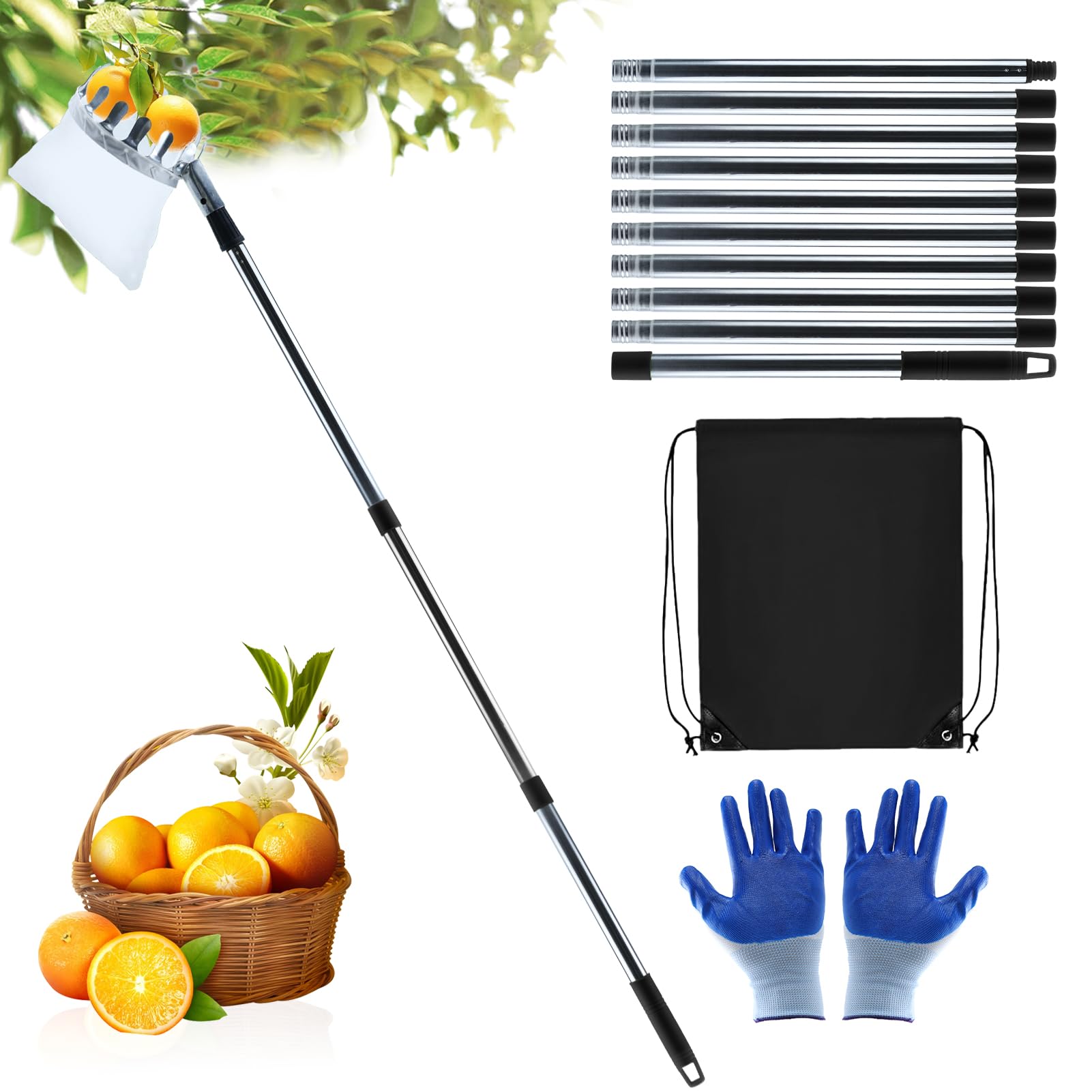 Ernte mühelos von der Erde aus! Dieser praktische Obstpflücker mit Teleskopstiel (bis 2,4m) macht das Pflücken zum Kinderspiel. Mit schonenden Zähnen und Auffangbeutel. Perfekt für Äpfel, Kirschen, Pflaumen und mehr. Kein Klettern mehr notwendig - einfach ausziehen und ernten!