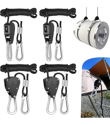 Spannen war noch nie so einfach! Mit diesen 4 praktischen Seilratschen hast du alles immer sicher im Griff. Aus robustem Nylon mit Metallzahnrädern, tragen sie bis zu 70 kg. Einfach am Seil ziehen - es rastet automatisch ein. Zum Lösen einfach den Daumenknopf drücken. Perfekt für Growzelte, Camping, zum Aufhängen von Lampen, Ventilatoren oder zum Trocknen von Kleidung. Jedes Set enthält 4 Meter langes Seil (4mm Durchmesser) und Karabinerhaken (5x50mm). Leicht, platzsparend und super vielseitig. Kein lästiges Knotenbinden mehr - einfach spannen und fertig! Ob im Garten, beim Camping oder in der Werkstatt - diese Ratschen sind deine perfekten Helfer. Deutsche Qualität zum fairen Preis!