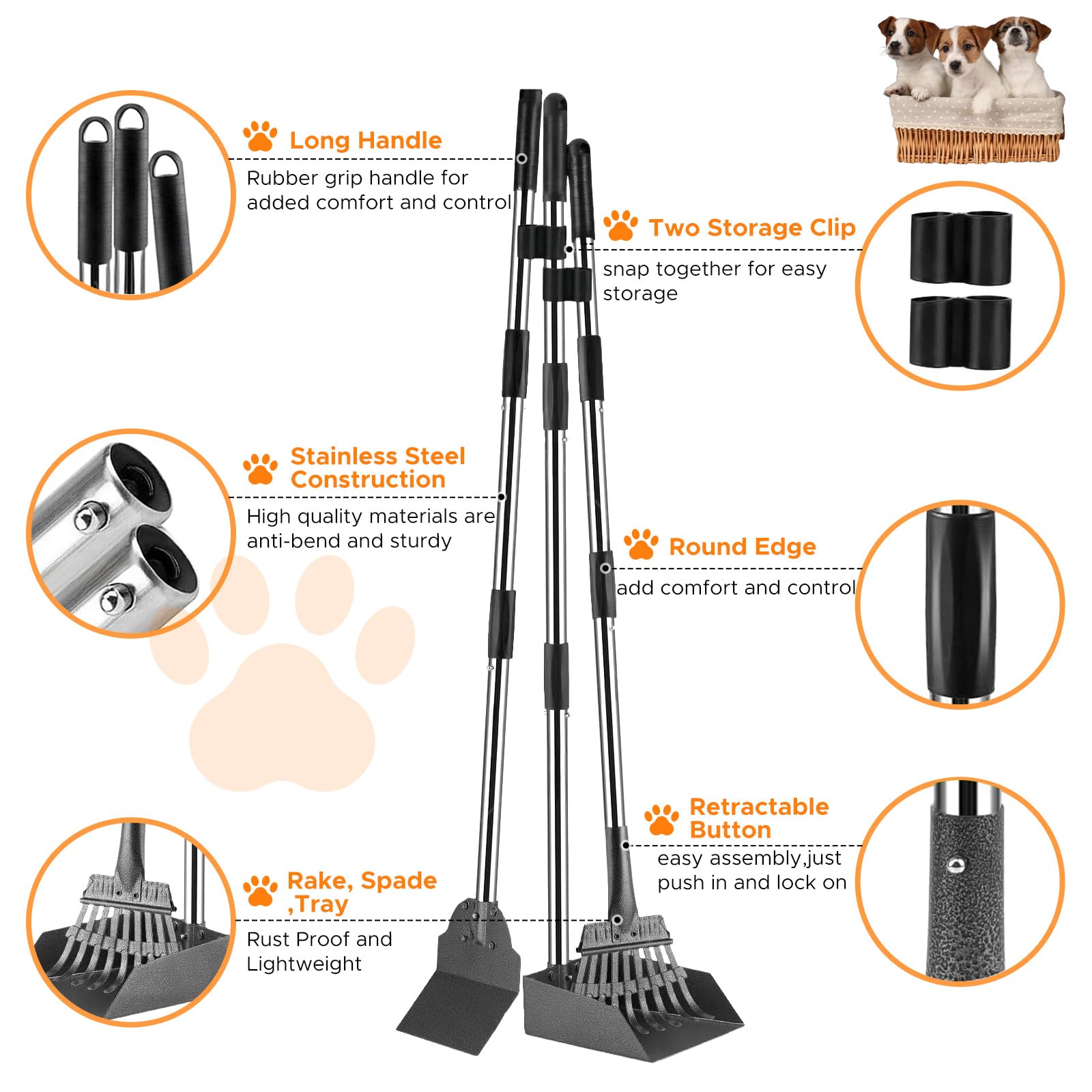Hundekotschaufel Set Mit Verstellbarem Griff - Rostfreier Kotentferner Für Garten & Spaziergang