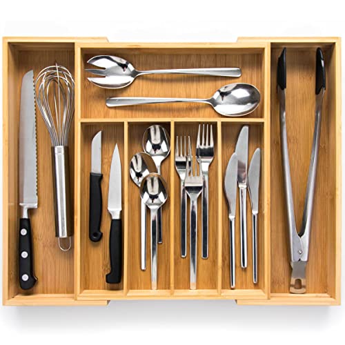 JOYBOY Bambus Besteckkasten - Verstellbarer Schubladenorganizer 32-52cm