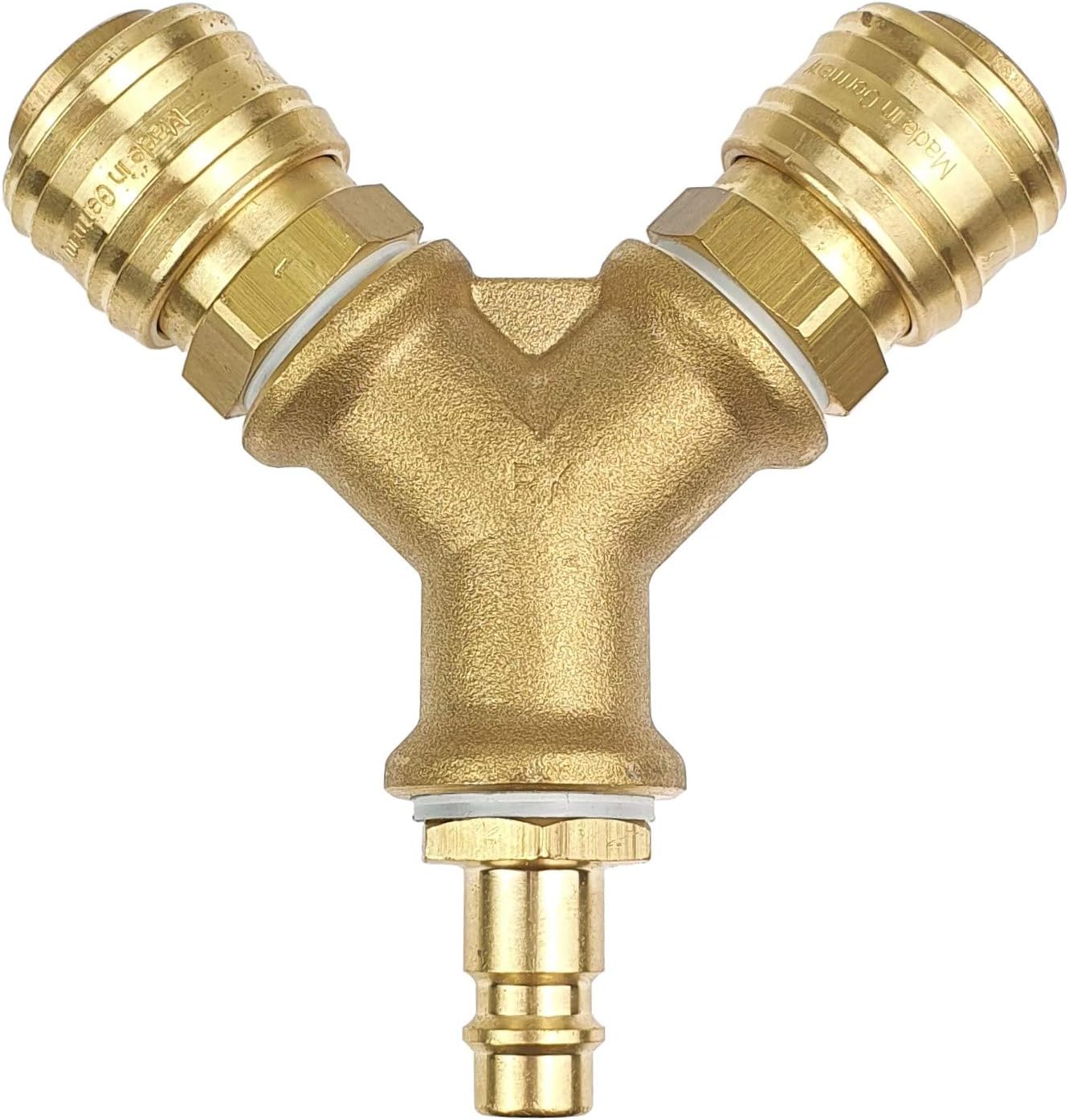 Druckluftverteiler 2-fach Messing - Y-Verteiler Mit Schnellkupplungen 1/4 Zoll