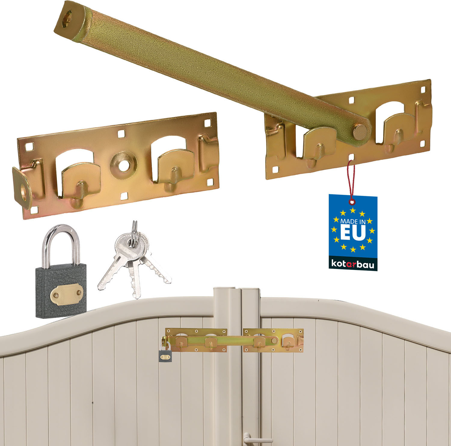 Dieses robuste Schlossriegel-Set von KOTARBAU bringt Sicherheit für deine Türen und Tore! Mit 130mm Länge und verzinkter Oberfläche ist der Riegel perfekt für den Außenbereich geeignet - wetterfest und rostbeständig. Im Set enthalten: Riegel, Gegenblech, 6 Befestigungsschrauben und ein solides Vorhängeschloss. Einfach zu montieren an Pforten, Garagentoren, Schuppen oder Kellertüren. Das Vorhängeschloss hat einen 5,4mm starken, gehärteten Stahlbügel und ein Gusseisen-Gehäuse - richtig stabil gegen Einbruchversuche. Perfekt für Haus, Garten und Werkstatt. Mit dem gelb verzinkten Finish sieht es nicht nur gut aus, sondern ist auch langlebig. Das komplette Set wiegt 360g und ist sofort einsatzbereit. Mehr Sicherheit für dein Zuhause - einfach montieren und beruhigt schlafen!