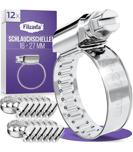Für alle, die es sicher mögen! Diese 10 Schlauchschellen aus verzinktem Stahl (Größe 20-32 mm) sind die perfekte Lösung für dichte Verbindungen an Waschmaschinen, Gartenschläuchen, Pool-Zubehör und mehr. Bis zu 25 Bar Druck halten sie problemlos stand - da musst du dir keine Sorgen um Undichtigkeiten machen.