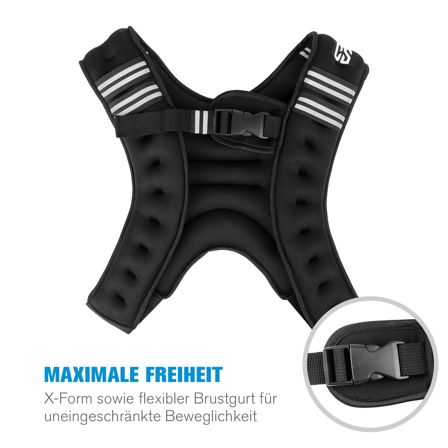Bring dein Training auf das nächste Level! Diese CAPITAL SPORTS X-Vest Gewichtsweste mit 5kg Gewicht macht jedes Workout intensiver. Die innovative X-Form und 2 flexible Brustgurte passen sich perfekt deinem Körper an und geben maximale Bewegungsfreiheit. Gefüllt mit kleinen Stahlkugeln für eine gleichmäßige Gewichtsverteilung - weich und anschmiegsam trotz des Gewichts. Aus atmungsaktivem Neopren und Nylon gefertigt, ist sie hautfreundlich und schnelltrocknend. Reflektorstreifen sorgen für Sicherheit beim Outdoor-Training. Perfekt für Bodyweight-Exercises, Functional Training, Laufen oder Calisthenics. Weiche Polsterung an Schultern, Brust und Rücken für optimalen Tragekomfort. Einfach zu reinigen und in 3 Gewichtsklassen erhältlich (5kg, 8kg, 10kg). Dein Geheimnis für effektiveres Training!