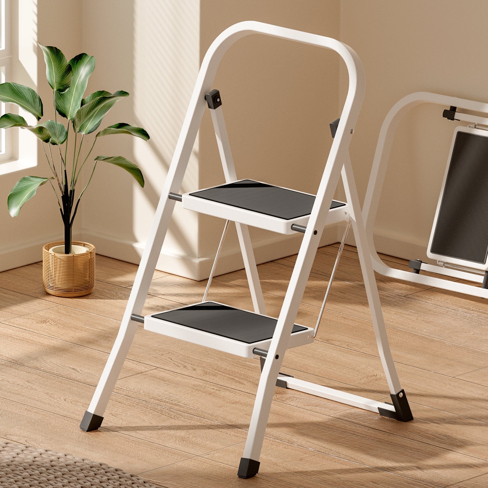 Home Vida Tritthocker 2-Stufen - Klappbare Küchenleiter Weiß/Schwarz