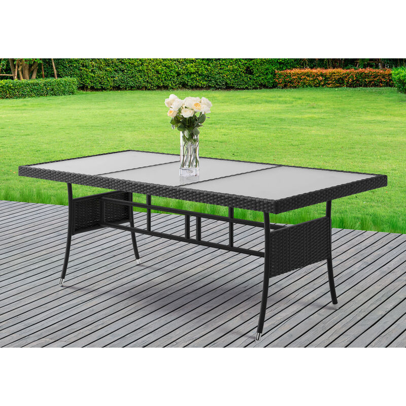 VidaXL Gartentisch 190x90cm Schwarz - Terrassentisch Aus Poly Rattan Mit Holzplatte