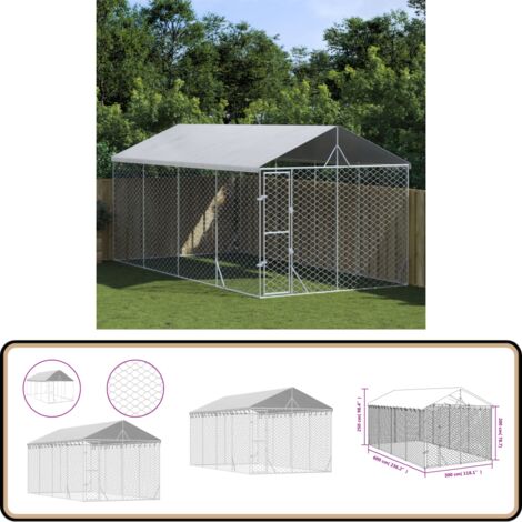 VidaXL Hundezwinger Outdoor 4x4x2,5m Mit Dach - Verzinkter Stahl Für Hunde & Kleintiere