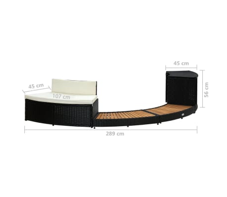 VidaXL Whirlpool-Einfassung Schwarz - Poly Rattan Mit Akazienholz & Sitzbank