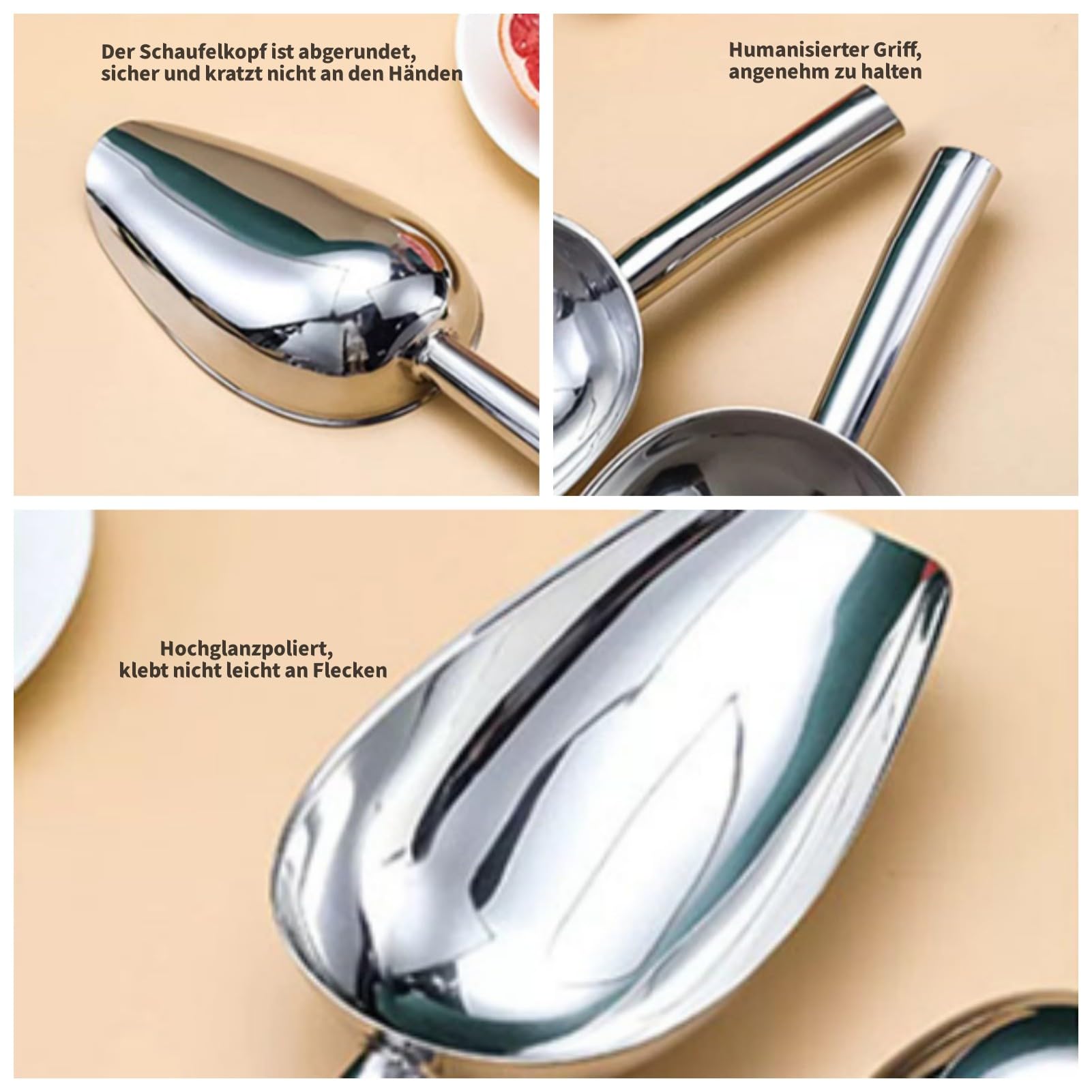 Wow, diese Edelstahl-Schaufel von DHYUACN ist echt ein Allround-Talent in Küche und Bar! Ob du Eiswürfel für Getränke brauchst, Mehl portionieren willst oder Zucker schaufeln musst - mit dem Teil geht alles easy. Die glatte Edelstahl-Oberfläche sorgt dafür, dass nichts kleben bleibt und die Reinigung unter fließendem Wasser zum Kinderspiel wird. Das moderne Design sieht nicht nur gut aus, sondern liegt auch super in der Hand. Besonders praktisch: Die rutschfeste Oberfläche und die stabile Konstruktion, die auch bei häufigem Gebrauch nicht verbiegt. Perfekt für die professionelle Gastronomie genauso wie für den Hausgebrauch. Ob in der Eisdiele, Bäckerei oder heimischen Bar - diese Schaufel ist immer einsatzbereit. Und wenn du sie nicht brauchst, passt sie platzsparend in jede Schublade oder hängt praktisch an nem Haken. Einfach mal ausprobieren - du wirst sehen, wie oft du sie benutzen wirst!