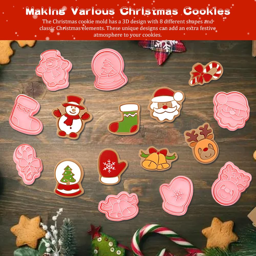Viilich Weihnachtsausstecher 8-teilig - 3D Plätzchenformen Für Weihnachtsbäckerei