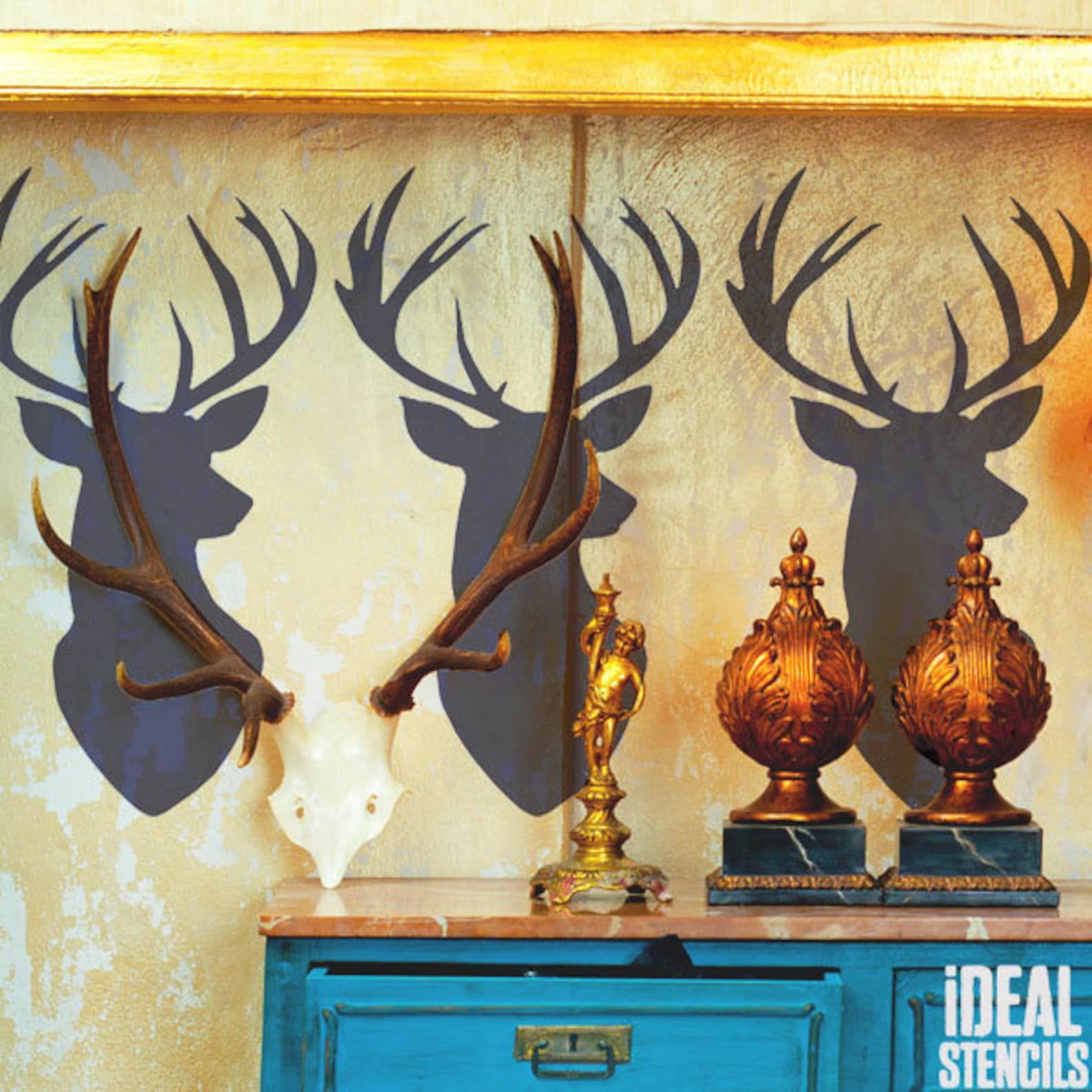 Vintage Hirschkopf Schablone - 26x35cm Wanddekoration Malvorlage