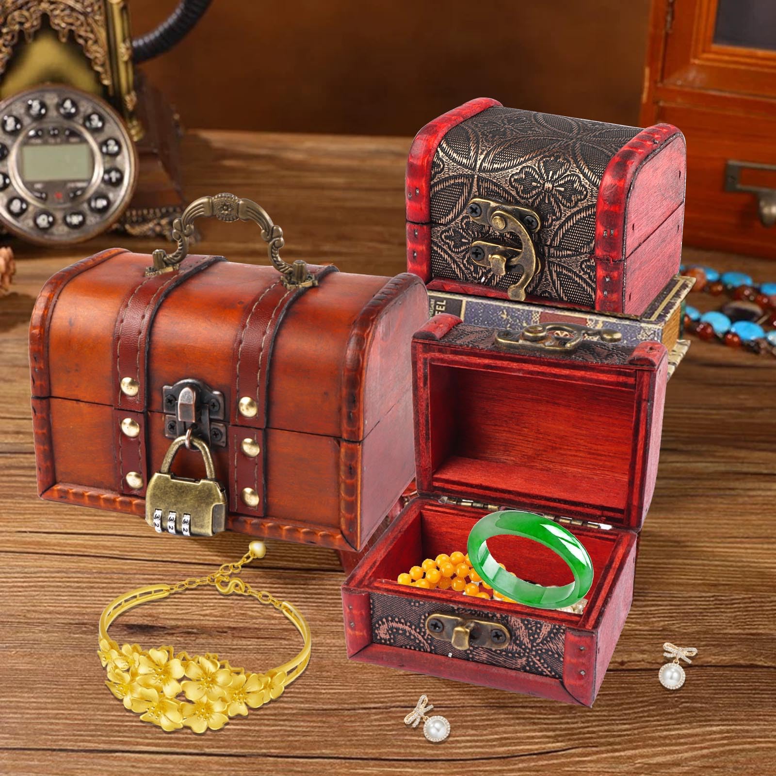 Vintage Holz Schatztruhe Mit Zahlenschloss - Retro Schmuckkästchen, Smaragd Grün, Für Kinder & Sammler