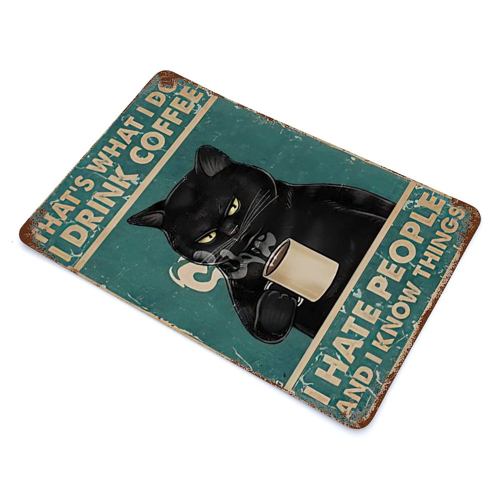Dieses coole Metallschild mit dem Bären-Motiv und dem Spruch 'That's What I Do I Drink Coffee I Hate People And I Know Things' ist ein echter Hingucker! Aus hochwertigem Metall mit aufgerollten Kanten - nichts schneidet sich. Mit 4 vorgebohrten Löchern für einfaches Aufhängen. Erhältlich in 20x30 cm oder 30x40 cm. Rostbeständige Oberfläche - sieht vintage aus, ist aber brandneu. Perfekt für Bar, Wohnzimmer, Küche, Café oder Büro. Bringt sofort Stimmung in jeden Raum. Ein lustiges Geschenk für Kaffeeliebhaber oder Menschen mit Humor. Der rustikale Look passt super zu industriellem oder Retro-Stil. Einfach aufhängen und schon hat man einen Eyecatcher an der Wand. Übrigens: Das Schild ist auch für draußen geeignet - also auch für die Terrasse oder den Garten. Macht einfach überall was her!